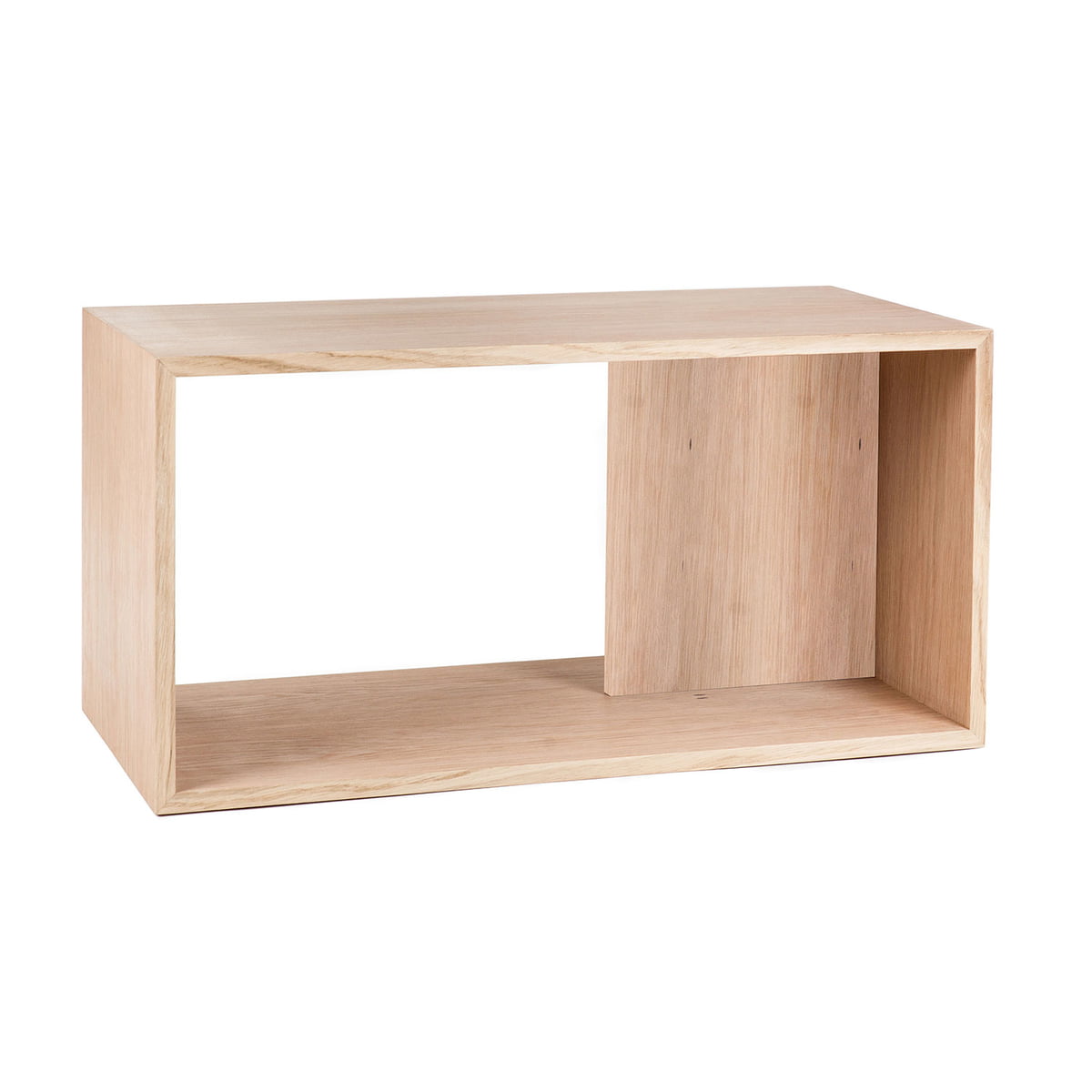 Die Basis des Regalsystems bildet eine Box aus MDF in Eiche furniert, die mit einer matt lackierten Innenplatte in verschiedenen Farben ausgestattet ist. Die Module können beliebig hochkant und quer durch ein einfaches Montagesystem miteinander verbunden werden. Die Module werden einfach mit Hilfe von Messingverbindungen ineinander gesteckt und können so schnell auch wieder abmontiert werden. Edgar kann durch das Stecksystem von der simplen Box zum Sideboard oder hohen Bücherregal werden und in wenigen Minuten wieder zur einzelnen Box schrumpfen.