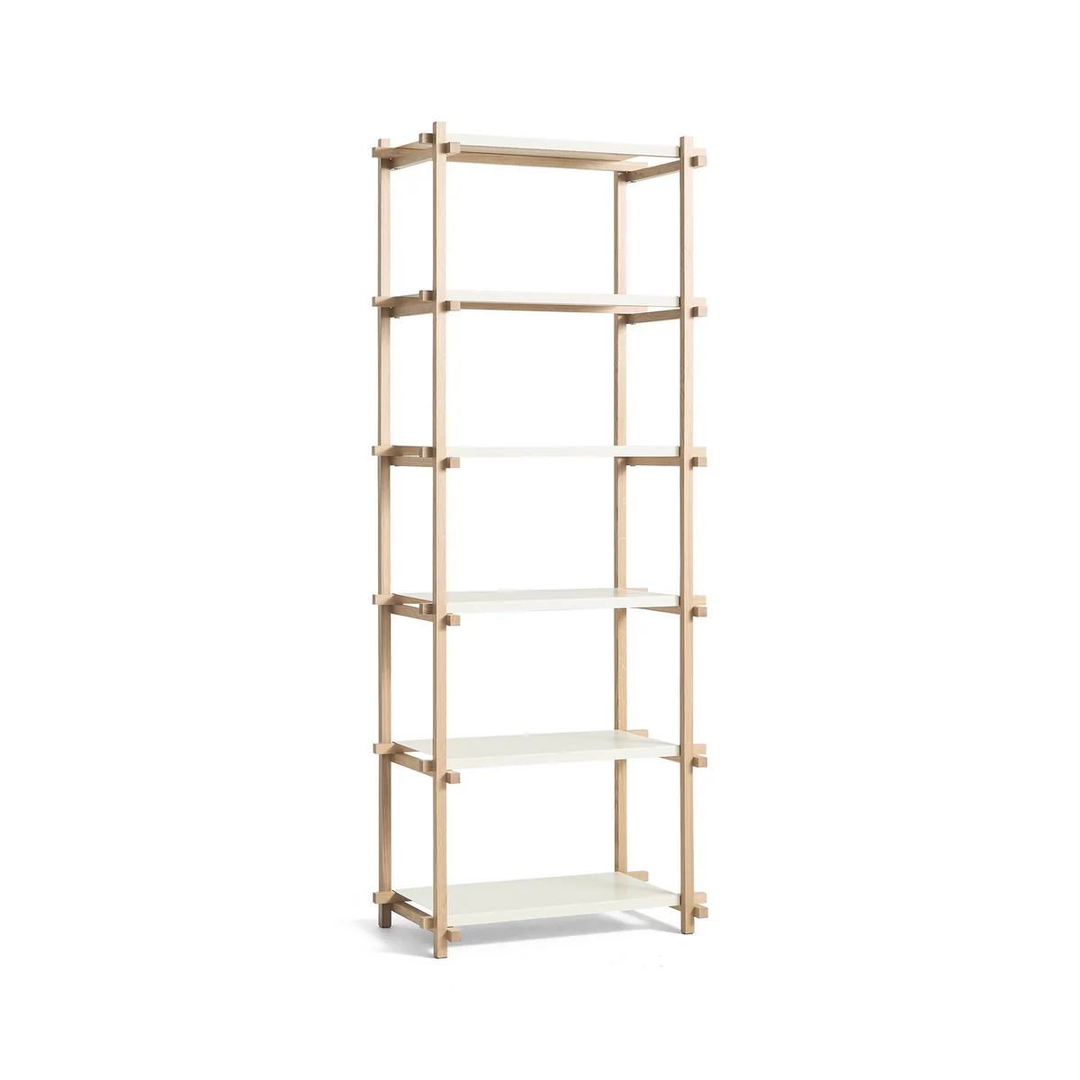 Woody trägt eindeutig den Geist der Moderne in sich. Es verzichtet auf überflüssige Elemente und die Details der Konstruktion werden nicht versteckt. Das Regal besteht ausschliesslich aus Eichenholz, Holzstäben, Stahl und Schrauben. Die behandelte Eiche verleiht dem Regal einen traditionell skandinavischen Ausdruck, der durch die Stahl-Regaleinlagen erneuert und kontrastiert wird.
