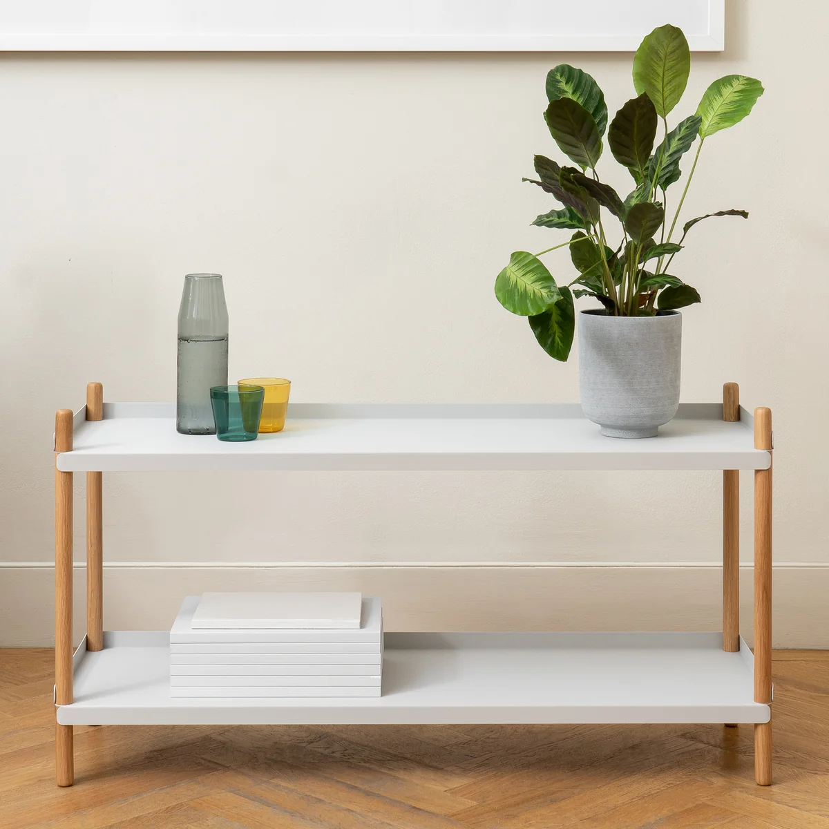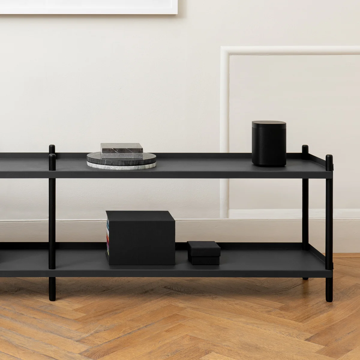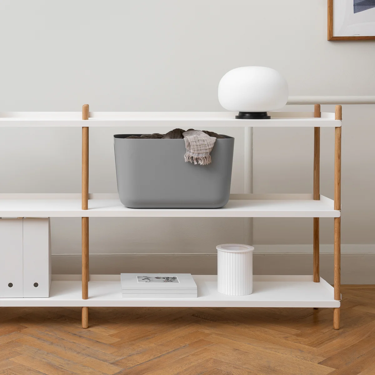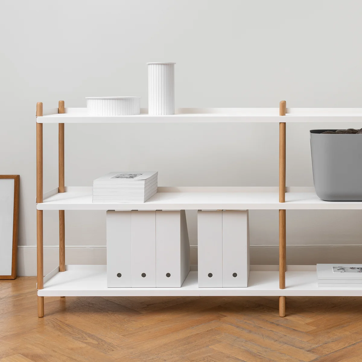 BOLT ist in verschiedenen Grössen erhältlich, die von niedrigen Regalen für den Flur oder TV-Elemente bis hin zu grösseren, mehrstöckigen Elementen reichen, die sich als Sideboards, Bücherregale, Hauswirtschafts- oder Badezimmerregale eignen.