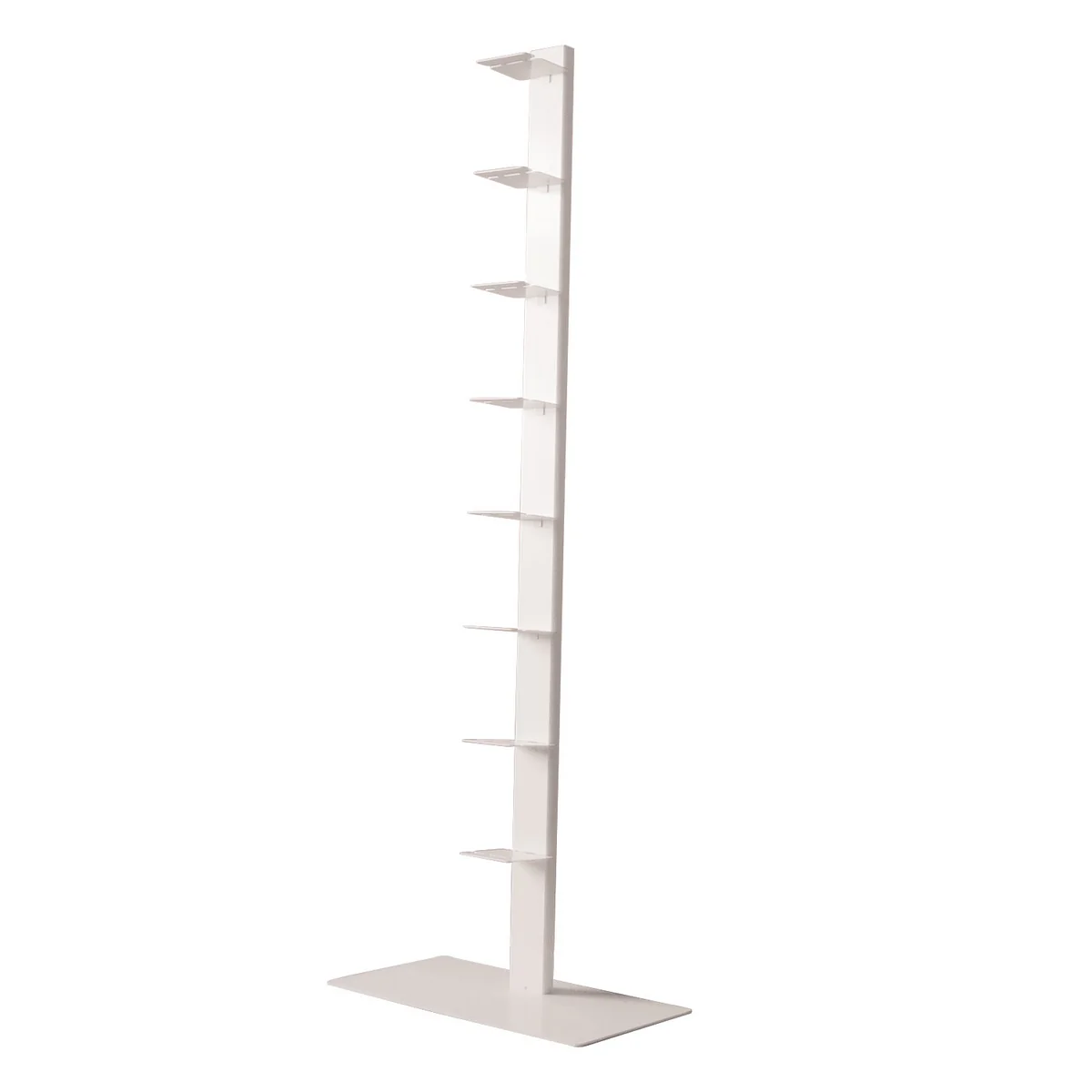 Auch DVDs oder CDs können können in dem Bookbaum ihren Platz finden und so als dekoratives Element im Raum fungieren. Dank des breiten, flachen Fusses findet der Booksbaum einen stabilen Halt und kann mit seinem reduzierten Design überzeugen. Verantwortlich für den Entwurf des extravaganten Bücherregals ist der Designer Michael Rösing. Gefertigt ist der Booksbaum aus pulverbeschichtetem Stahl.