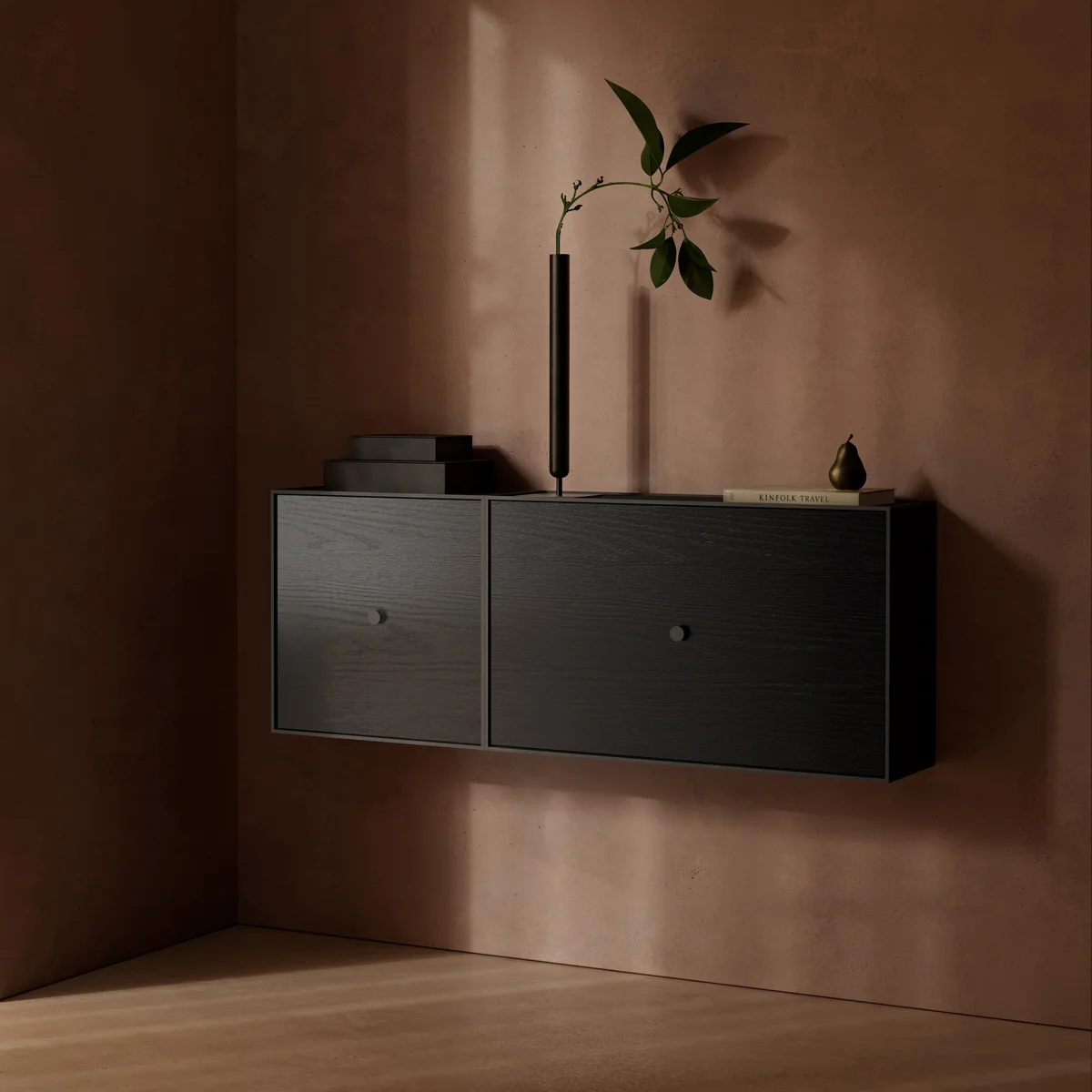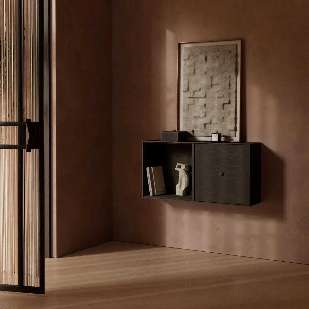 Bestimmen Sie den Look: Die Frame Schrankmodule sind in den Optionen Hellgrau, Weiss, Schwarz, Fjord und Sand erhältlich. Ebenso besteht die Wahl zwischen natürlicher und geräucherter Eiche. Optional ist ebenso die Tür inklusive.