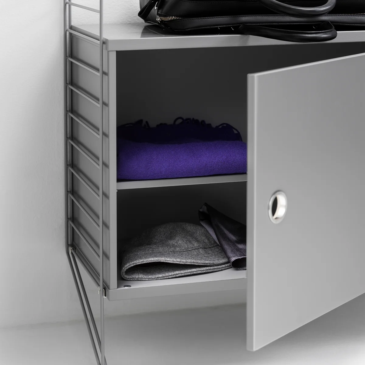 Das Schrankmodul mit Tür von String ist ein stylisches Hängekabinett mit verschliessbarer Tür, das sich als Modul hervorragend ins Pocket Wandregalsystem integrieren lässt. Mit seinen vielen Farben und dem universellen Design ist es für jedes Zimmer und jeden Zweck hervorragend geeignet: Ob im Schlafzimmer, für Kleidung, als Küchenschrank, im Badezimmer oder dem Wohnzimmer.