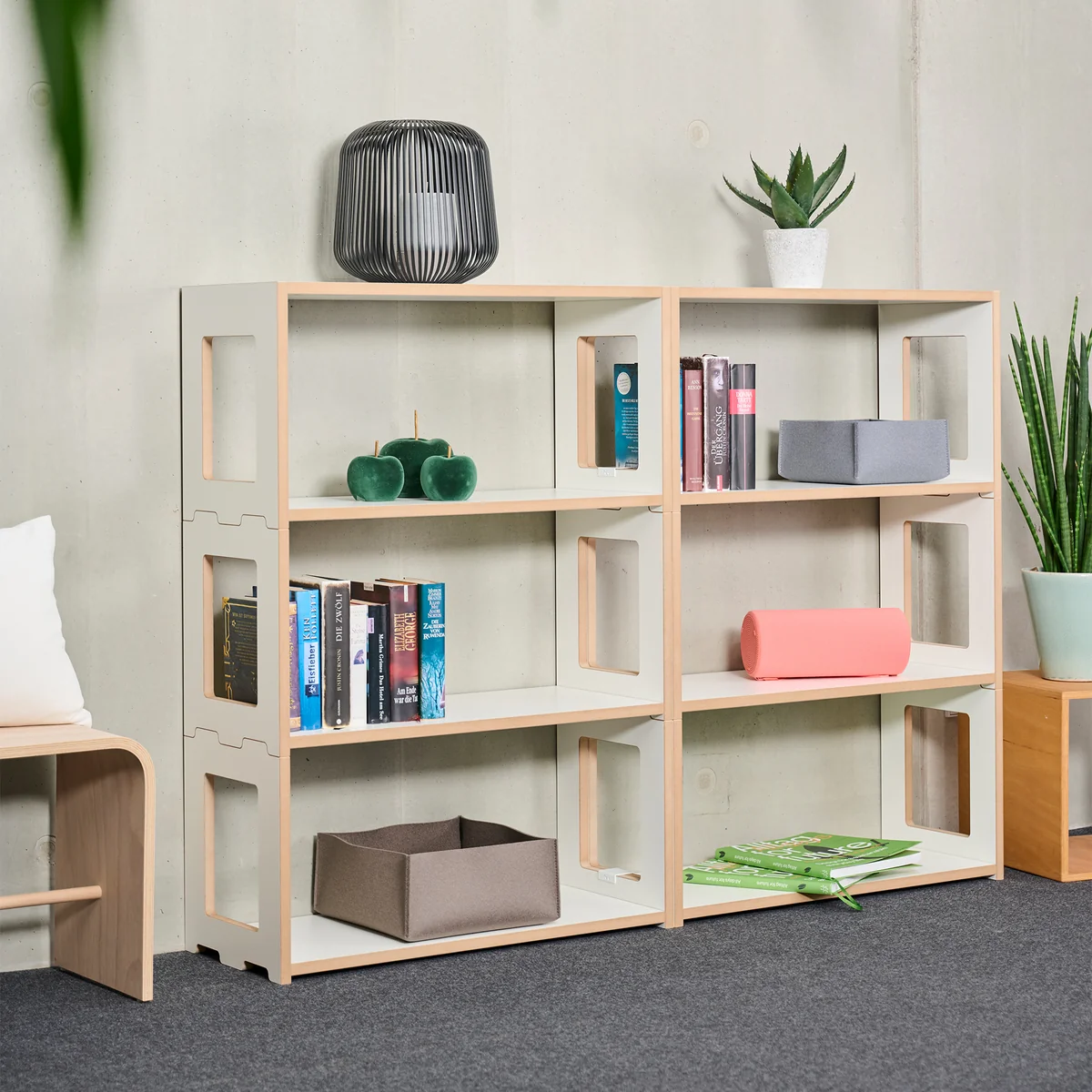 Das hochstapler Blick Regalsystem aus MDF von Tojo vereint raffinierte Funktionalität mit minimalistischem Design. Mit seinem klaren, schlichten Äusseren fügt es sich nahtlos in moderne Wohnräume ein und setzt zugleich stilvolle Akzente. Die modular aufgebauten Elemente ermöglichen eine individuelle Gestaltung nach persönlichen Vorlieben und Bedürfnissen. Dank seiner hochwertigen Verarbeitung und stabilen Konstruktion bietet das Regalsystem nicht nur eine ansprechende Präsentationsfläche für Bücher, Dekorationsobjekte und mehr, sondern überzeugt auch durch seine Langlebigkeit und Robustheit. Ein vielseitiges Möbelstück, das Ästhetik und Funktionalität in perfekter Harmonie vereint und dabei Wohnräume in zeitlose Eleganz taucht.
