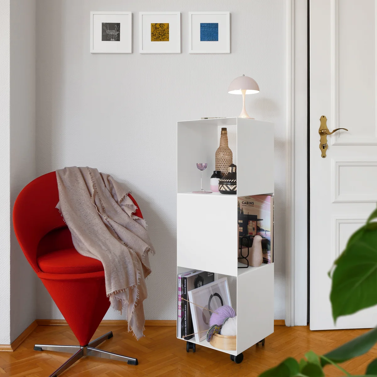 Der 2side Rolltainer von vonbox ist ein vielseitiger und flexibler Container, der sich sowohl für den Einsatz im Büro als auch in privaten Wohnräumen ideal eignet. Mit seinem durchdachten Design ermöglicht er einen bequemen Zugriff von allen Seiten, ohne störende Rückwände, was zahlreiche Nutzungs- und Gestaltungsmöglichkeiten eröffnet. Die robusten Rollen gewährleisten eine sichere Bewegung auf unterschiedlichen Bodenbelägen wie Parkett und Teppich, wodurch der 2side Rolltainer mühelos an jeden gewünschten Ort verschoben werden kann. Er bietet ausreichend Platz für bis zu 12 breite Aktenordner und kombiniert dabei Funktionalität mit einem modernen, stilvollen Erscheinungsbild. In Wohnräumen können die grosszügigen Fächer individuell dekoriert und gestaltet werden, was den 2side Rolltainer zu einem echten Allrounder macht. Ein Highlight für jedes Interieur!