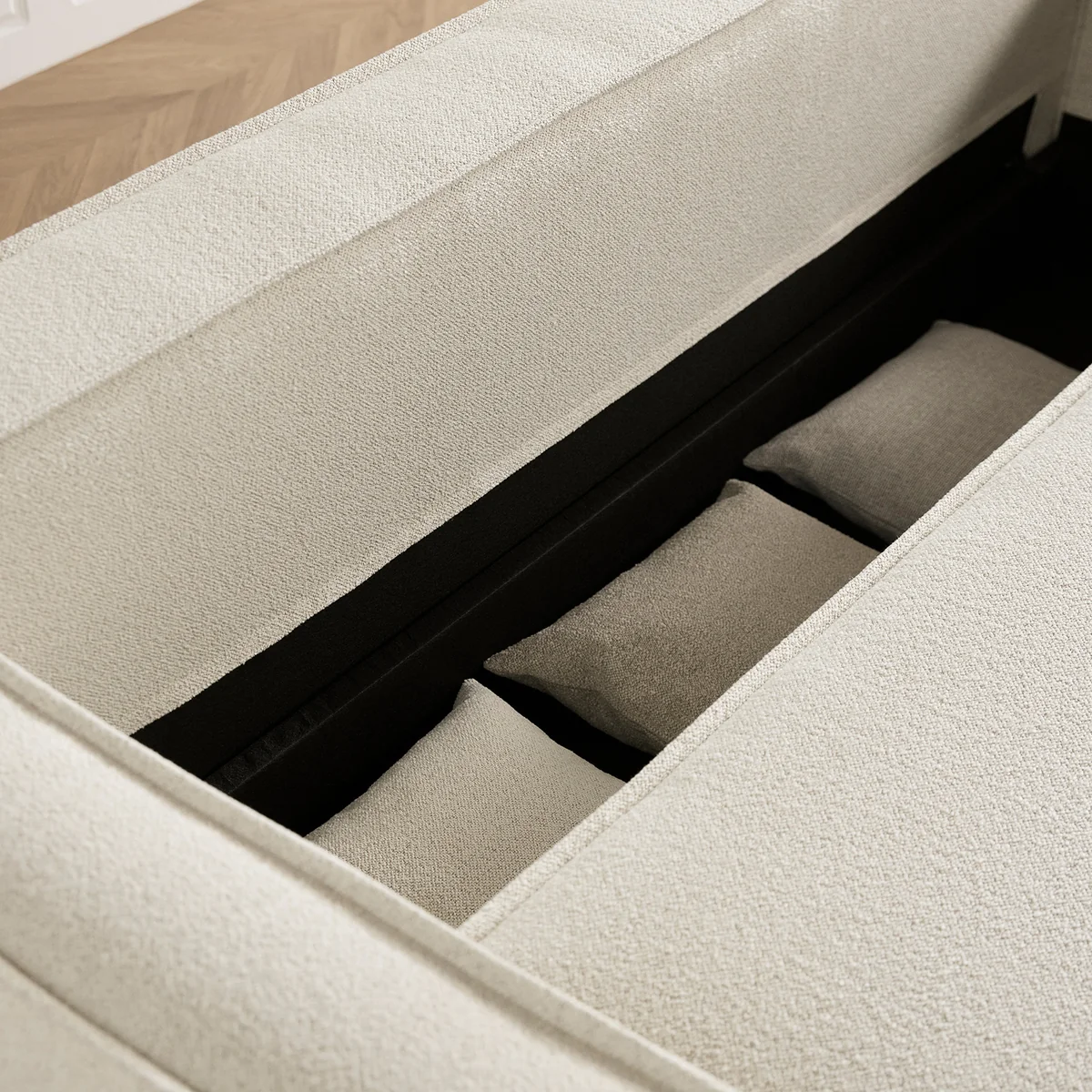 Dank des leicht abnehmbaren Bezugs lässt sich das Sofa unkompliziert reinigen und bei Bedarf erneuern – eine Lösung, die sowohl Alltagstauglichkeit als auch Langlebigkeit unterstützt. Ob für gesellige Runden oder entspannte Abende, Newilla überzeugt als gemütlicher Mittelpunkt im Wohnraum.