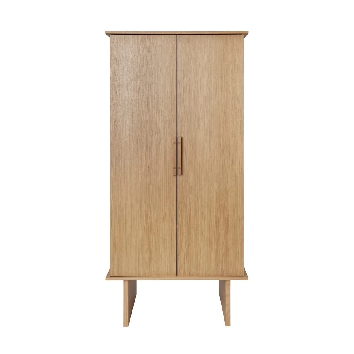 Der Stilt Kleiderschrank von Ferm Living vereint skulpturale Präsenz mit alltagstauglicher Ordnung. Inspiriert von architektonischen Säulen steht er auf hohen, schlanken Beinen und wirkt dadurch leicht und aufgeräumt – selbst bei grosszügigem Stauraum. Klare Linien und markante Griffe unterstreichen das reduzierte Design, das sich mühelos in Schlaf- oder Ankleidezimmer, aber auch in Flure integriert. Durchdacht bis ins Detail und für einen einfachen Aufbau flach verpackt, verbindet Stilt Form, Funktion und Wohnlichkeit.