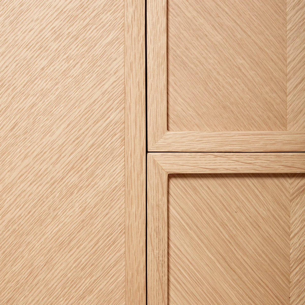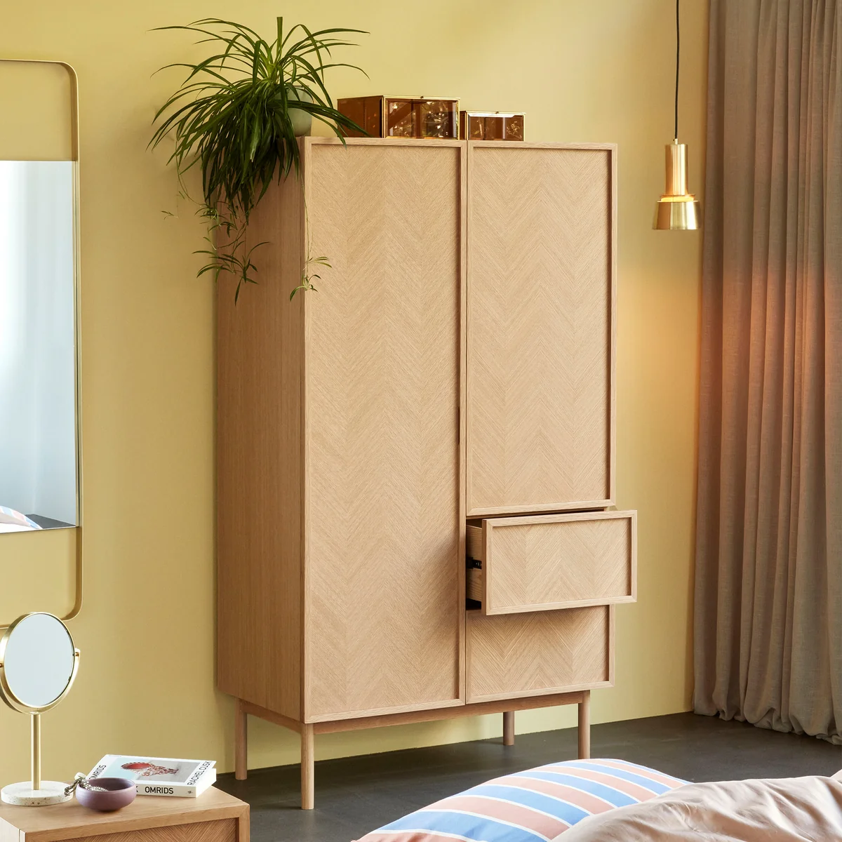Der Herringbone Kleiderschrank von Hübsch Interior ist ein Meisterwerk aus hochwertigem Eichenholz, das durch sein elegantes Fischgrätenmuster besticht. Dieser Kleiderschrank vereint skandinavisches Design mit funktionaler Ästhetik und bietet grosszügigen Stauraum für Ihre Kleidung und Accessoires. Die warme, natürliche Eichenholzfarbe fügt sich harmonisch in jedes Interieur ein und verleiht Ihrem Raum eine gemütliche und zugleich stilvolle Atmosphäre. Mit seiner robusten Bauweise und den feinen handwerklichen Details ist der Herringbone Kleiderschrank nicht nur ein praktisches Möbelstück, sondern auch ein zeitloses Highlight in Ihrem Zuhause.