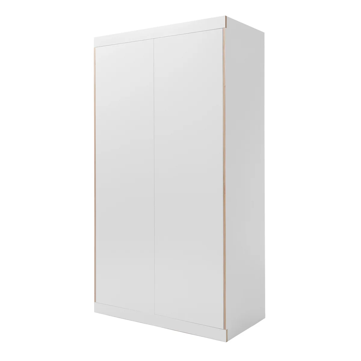 Durch die fehlenden Griffe bekommt die Aussenseite ein glattes und edles Aussehen, welches durch die natürliche Birkenschichtholzkante aufgebrochen wird. Zu öffnen ist der Schrank mit der Push-to-Open Druckmechanik. Die umrahmte Oberseite des Schranks kann als Ablagefläche und Stauraum genutzt werden. Der Schrank aus Spanplatte mit Melamin-Belegung wird mit einem Konstruktionsboden und einer Kleiderstange geliefert. Beide Elemente können auf beliebiger Höhe im Kleiderschrank befestigt werden.