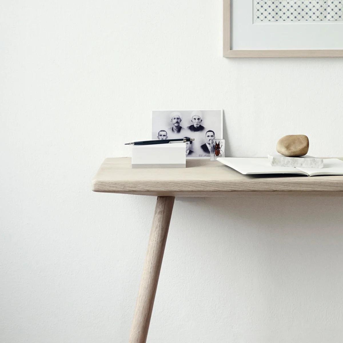 Für die Georg Serie von Skagerak gab Christina Liljenberg Halstrøm Zusatzmöbeln eine neue Bedeutung als charakteristische Einrichtungselemente, wie sie es eigentlich schon immer verdient haben. Die Möbel der Georg Kollektion mit ungewöhnlicher Beinstellung und reduzierten Formen sind aus Eichenholz hergestellt. In der Naturholz-Variante fügt das Designerstück von Skagerak dem Ambiente einen Hauch Natürlichkeit hinzu, während die schwarze Version edel und elegant wirkt. Im Gegensatz zum Georg Konsolentisch bietet der Schreibtisch eine grössere Fläche und die Möglichkeit eine oder zwei praktische Schubladen zu montieren.