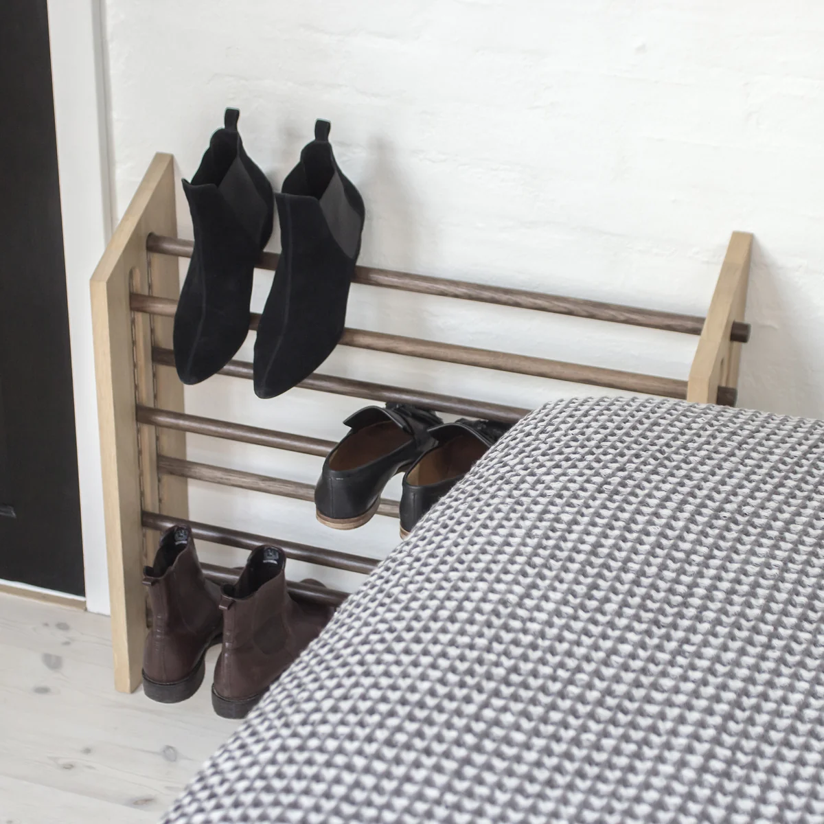 Das Roon & Rahn Moodstand Schuhregal von We Do Wood ist ein variables Stück, das für Ordnung im Flur sorgt. Es lässt sich perfekt an die individuellen Bedürfnisse anpassen, in dem die Regalstangen nach Wunsch platziert werden. Somit ist das Regal perfekt für den Alltag und kann vielseitig kombiniert werden. An der Wand montiert oder auf dem Boden formt das Schuhregal einen attraktiven Blickfang, der sich aufgrund seiner Funktionalität unter Beweis stellt. Das Roon & Rahn Moodstand Schuhregal von We Do Wood ist in unterschiedlichen Grössen- und Farbausführungen erhältlich.