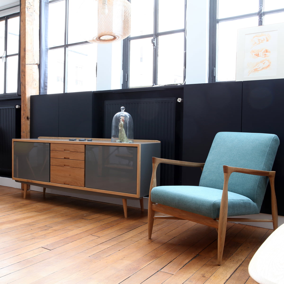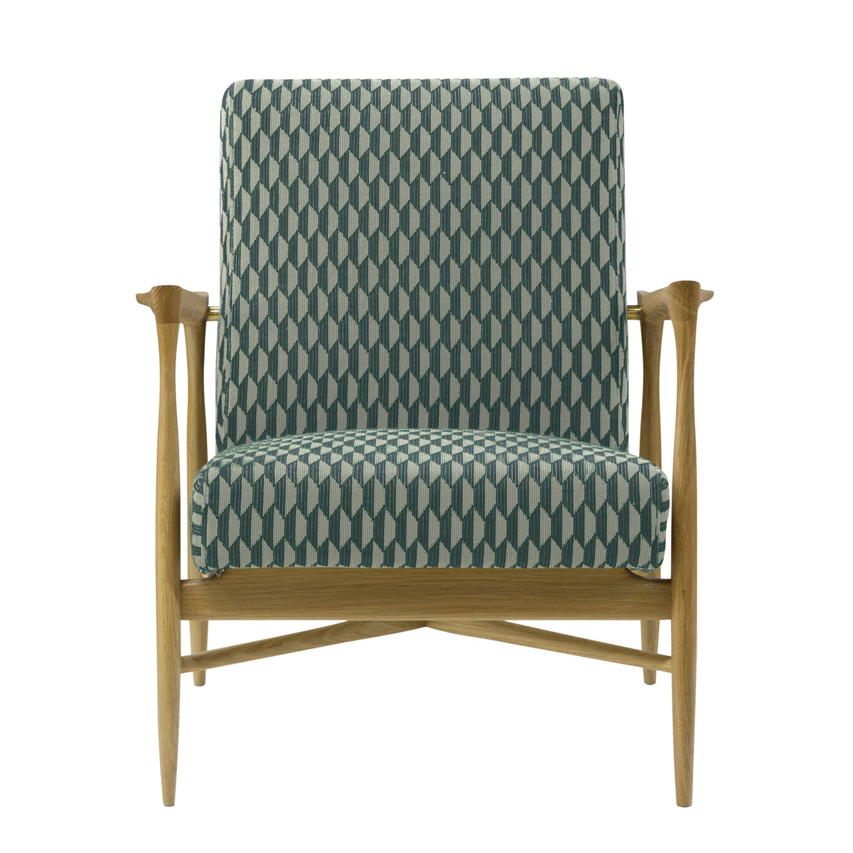 Der Floating Sessel von David Hodkinson für red edition besteht aus einem Rahmen aus massivem Eichenholz. Der Bezug der Sitzfläche und der Rückenlehne ist in verschiedenen Stoffen, Farben und Mustern erhältlich.