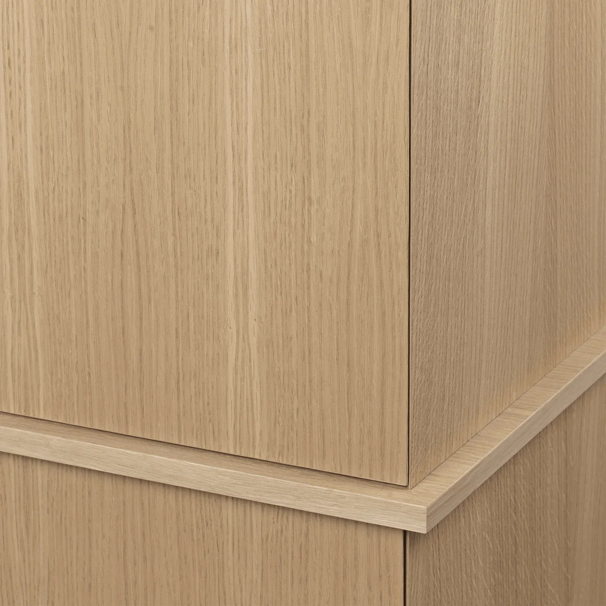 Das Stilt Sideboard von Ferm Living kombiniert zeitloses Design mit hochwertiger Verarbeitung und Nachhaltigkeit. Gefertigt aus FSC™-zertifiziertem Eichenfurnier mit einem MDP-Kern, bietet das Sideboard sowohl eine elegante Optik als auch eine umweltfreundliche Materialwahl. Die natürliche PU-Lackierung verleiht dem Möbelstück nicht nur eine ansprechende, matte Oberfläche, sondern schützt es auch vor täglichen Gebrauchsspuren. Mit seinem klaren, minimalistischen Design fügt sich das Stilt Sideboard nahtlos in verschiedene Wohnstile ein und bietet grosszügigen Stauraum für Ihre persönlichen Gegenstände, während es gleichzeitig einen modernen, stilvollen Akzent in Ihrem Raum setzt.