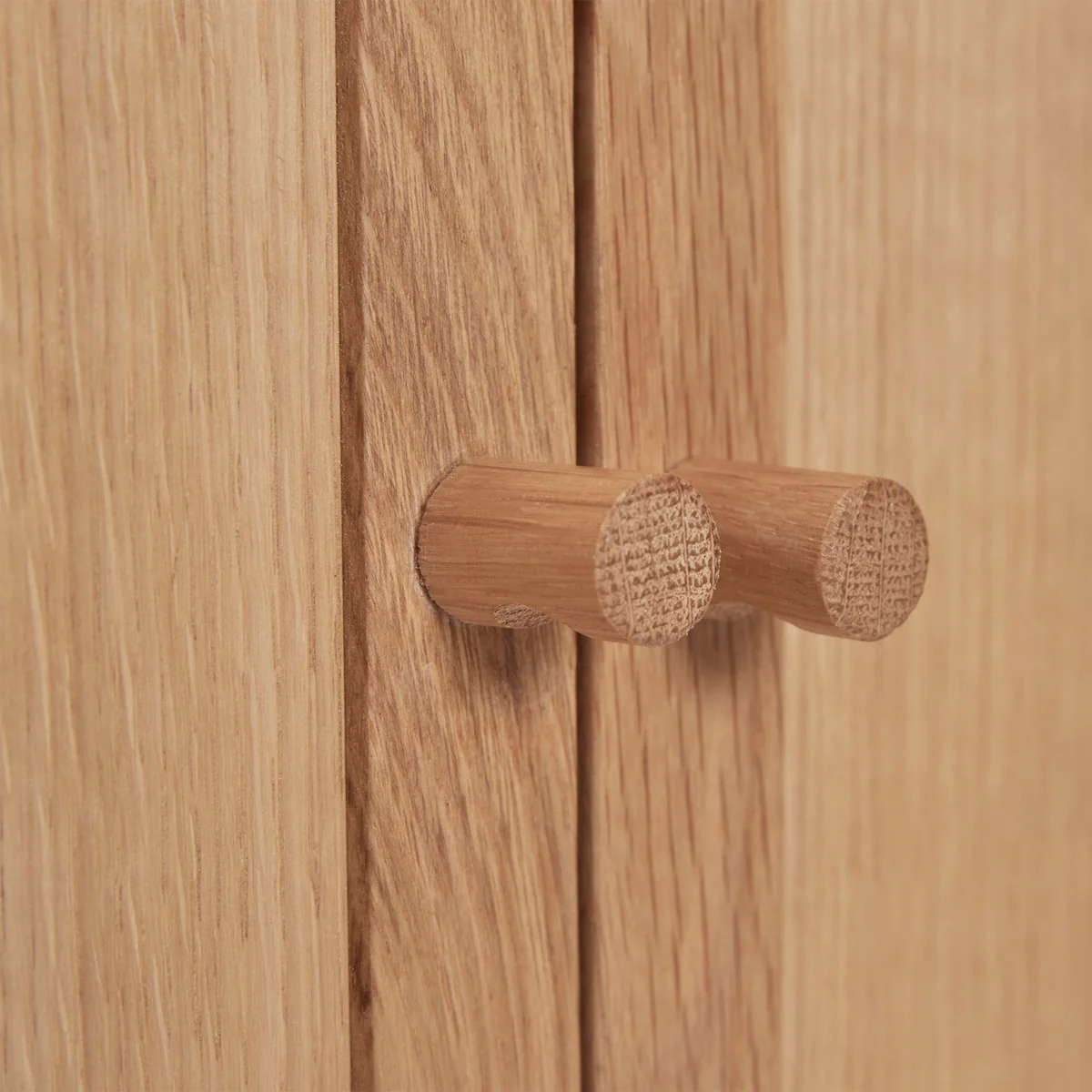 Hergestellt aus FSC®-zertifiziertem Eichenholz und Eichenfurnier, ist die Konsole langlebig und besonders robust. Die natürliche Optik und Maserung verleihen dem Wohnraum eine wohnliche und gemütliche Nuance, die sich durch weitere dekorative Objekte ergänzen und ausführen lässt.