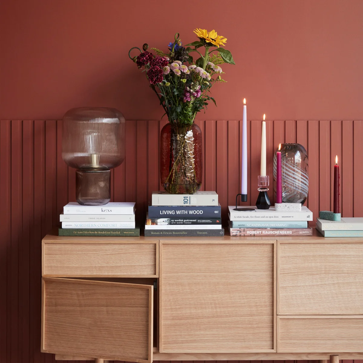 Hübsch Interior stellt das Sideboard aus natürlich lackiertem Eichenholz her, welches aus FSC®-zertifizierten Wäldern stammt. Es ist zudem mit wahlweise vier oder fünf Fächern erhältlich.