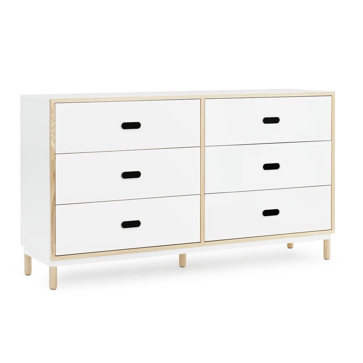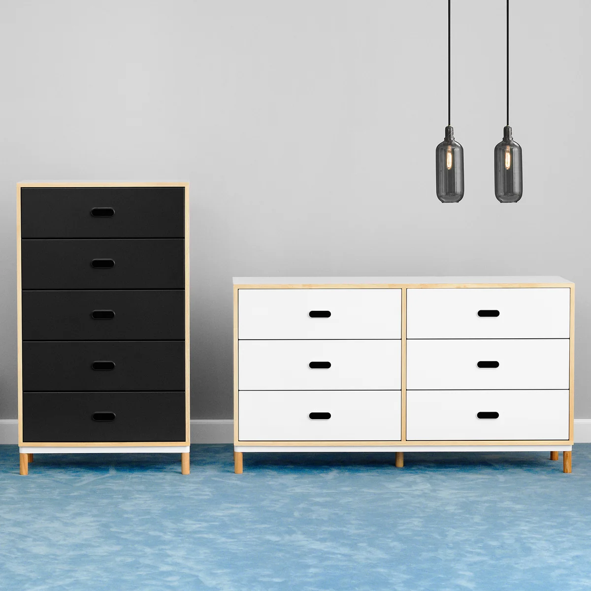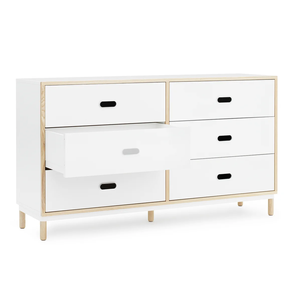 Besonderer Fokus liegt auf den wohlüberlegten und praktischen Details und Materialien. So sind die Öffnungsgriffe charakteristisch für die Kabino Serie. Das Besondere daran: Dank der Soft Close Funktion schliessen die Schubladen vollkommen geräuschlos. Die Kombination von Stahl und Holz verleiht der Kommode ausserdem einen modernen, industriellen Look, der sich dank reduzierter Formensprachen vielseitig in unterschiedliche Wohnbereiche integrieren lässt.