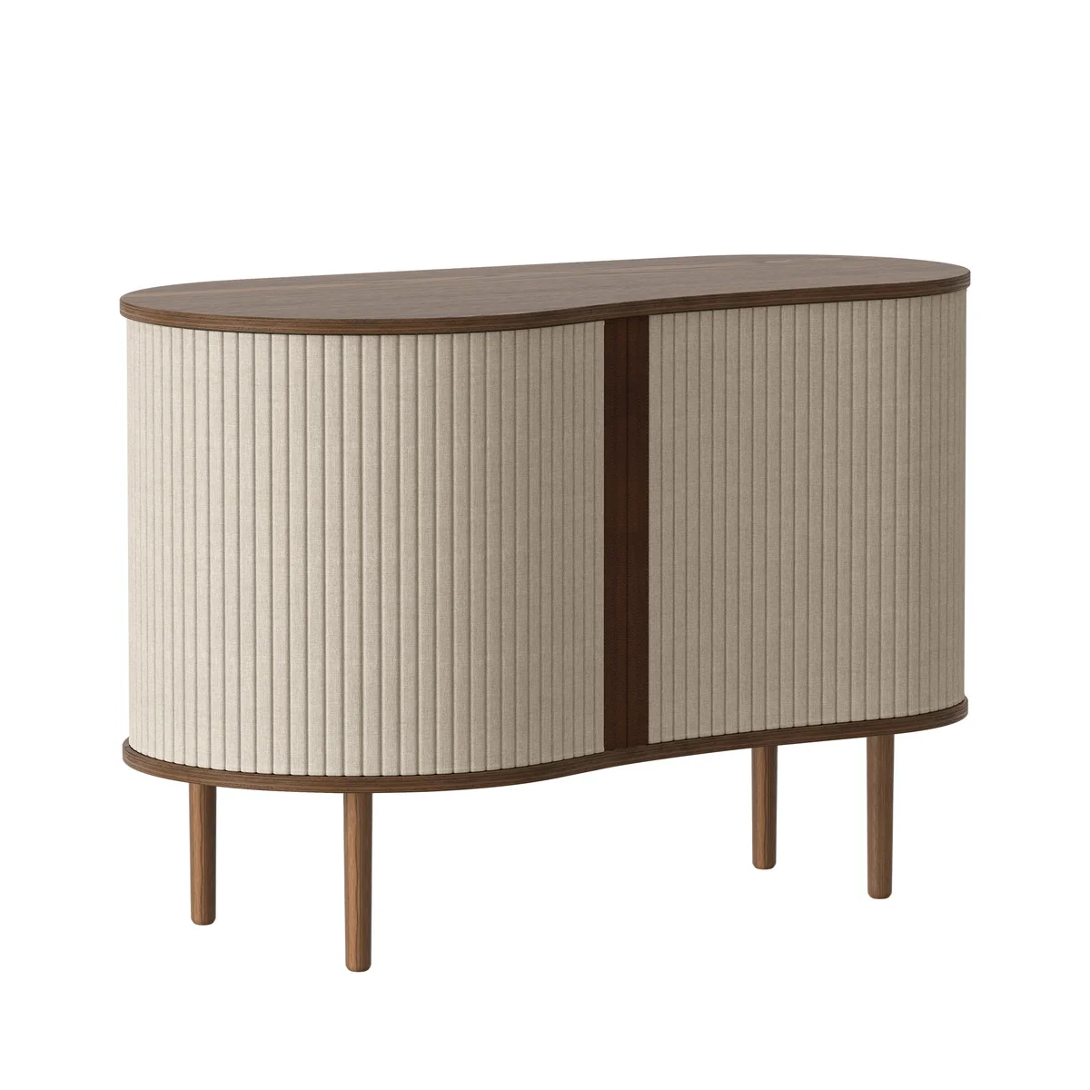 Die harmonischen Ecken des von Jonas Søndergaard entworfenen Kommoden runden sein Profil ab, wodurch es sich sogar in einem Raum mit begrenztem Platz leicht einfügt. Die Rollschiebetüren besitzen eine Textilabdeckung, was Audacious eine weiche Haptik verleiht.