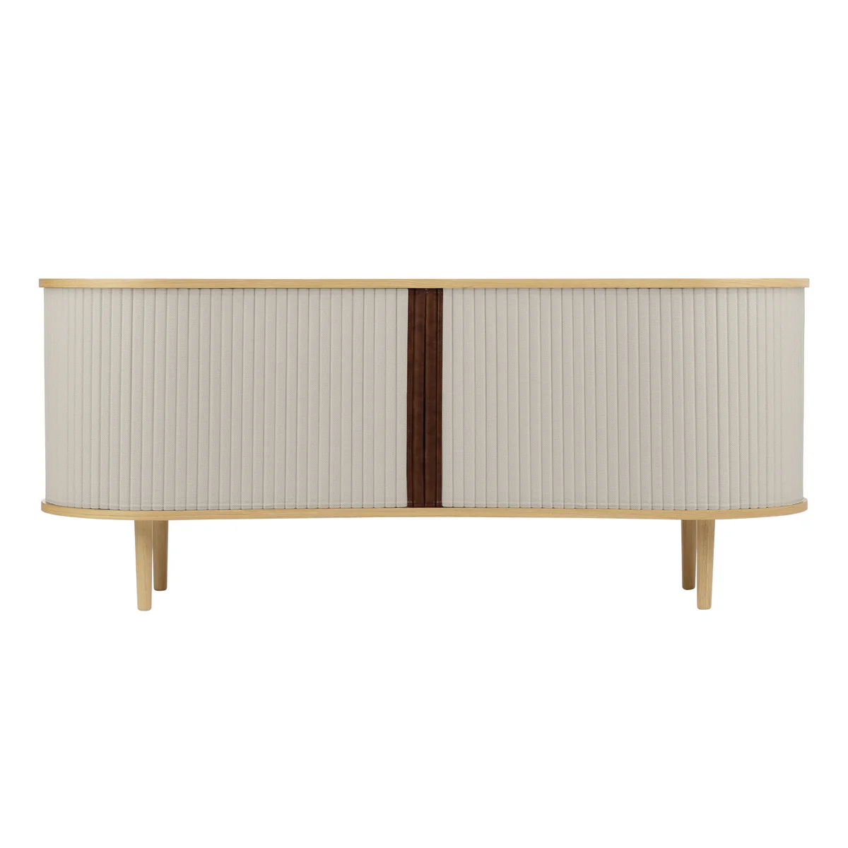 Das Audacious Sideboard von Umage verkörpert raffinierte Eleganz und funktionale Schlichtheit zugleich. Mit seinem zeitlosen Design und seiner hochwertigen Verarbeitung aus robustem Holz wird dieses Sideboard zum Blickfang in jedem Raum. Die klaren Linien und die minimalistische Ästhetik verleihen ihm eine moderne Ausstrahlung, während die sorgfältig gestalteten Details ihm eine besondere Note verleihen. Die grosszügige Stauraumkapazität ermöglicht eine ordentliche und organisierte Aufbewahrung verschiedenster Gegenstände, von Geschirr über Bücher bis hin zu persönlichen Gegenständen. Egal ob im Wohnzimmer, Esszimmer oder Flur – das Audacious Sideboard fügt sich nahtlos in jede Einrichtung ein und bereichert den Raum mit seinem zeitlosen Charme und seiner funktionalen Eleganz.