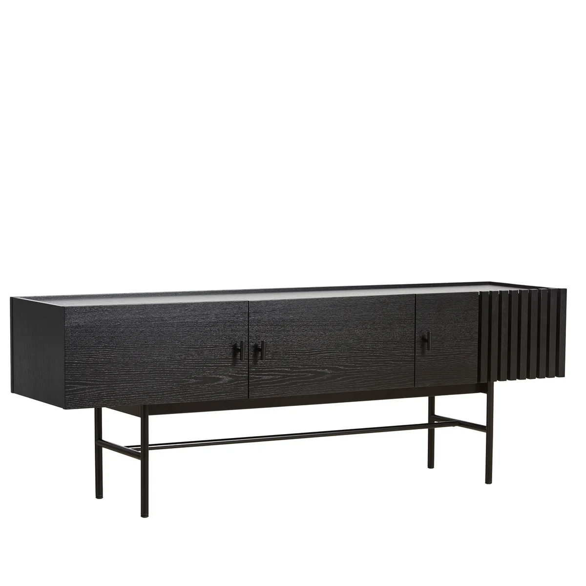 Das Sideboard wird zum dezenten Hingucker im Raum und verstaut zugleich viele verschiedene Dinge. Auf dem Sideboard lassen sich Vasen, Bücher und andere Dekorationselemente stilvoll präsentieren. Das Array Sideboard aus Eichenholz und lackiertem Stahl ist in verschiedenen Grössen und Farben erhältlich.
