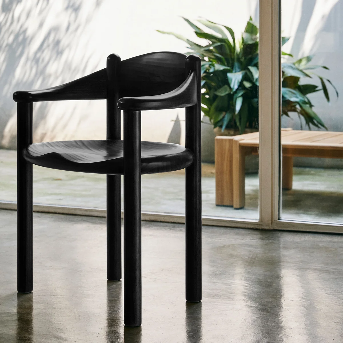 Der Daumiller Armlehnstuhl von Gubi vermittelt das Gefühl von Alltagskultur in einem gemütlich-rustikalem Design. Die sichtbare Maserung des Holzes verleiht dem Stuhl einen natürlichen Anschein und kann mit Möbeln in einem ästhetischen Landhausstil kombiniert werden.