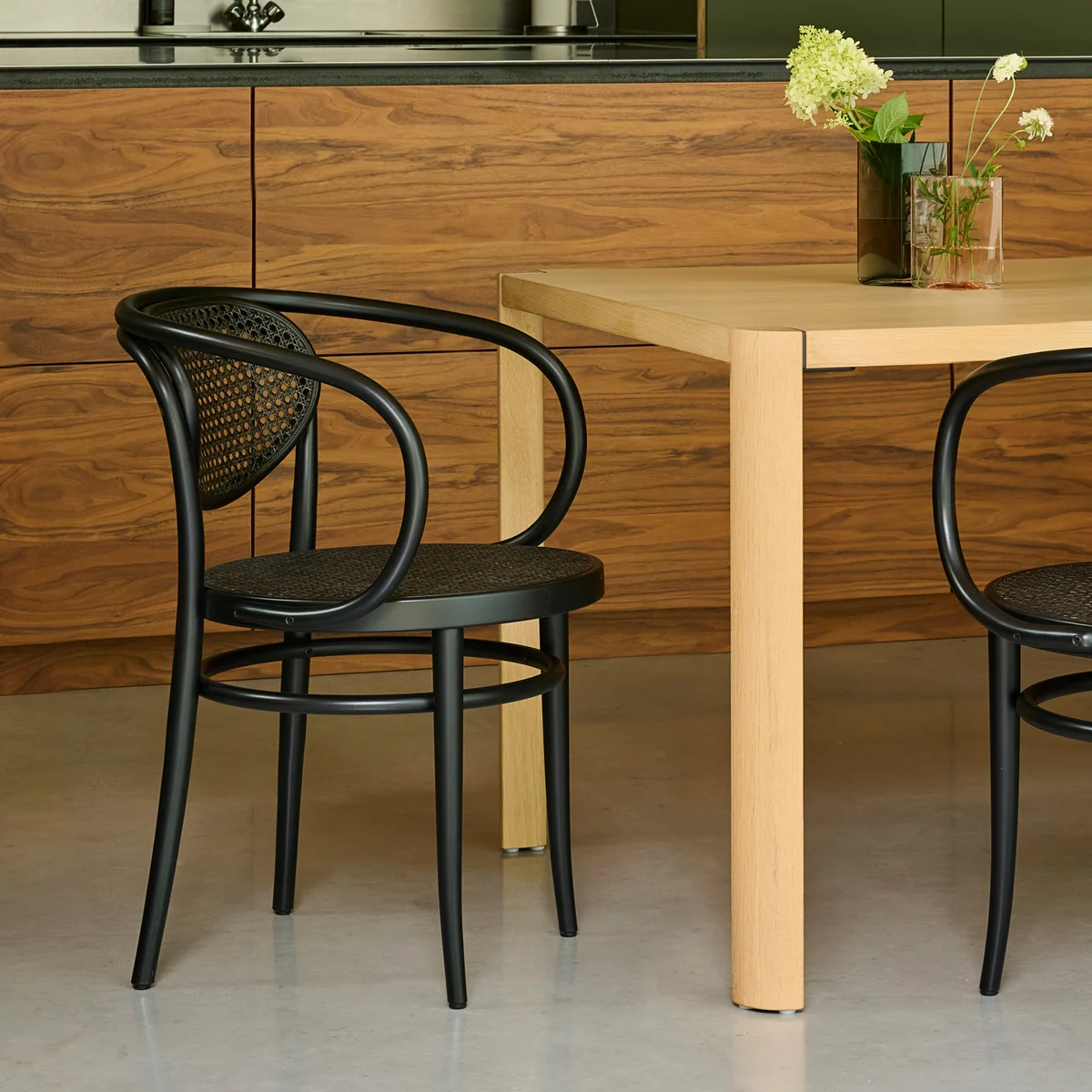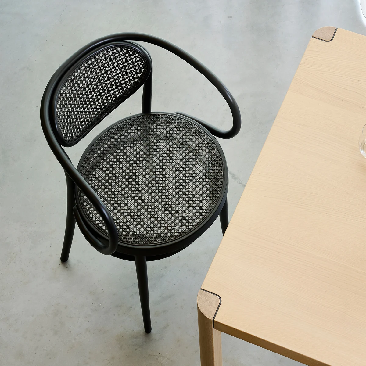 Thonet - 210 R Armlehnstuhl, Rohrgeflecht Dark Melange / Buche schwarz (TP 29)