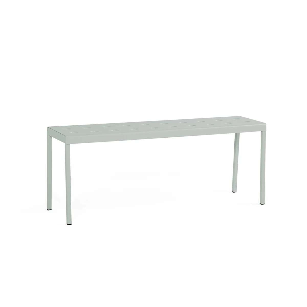 Die Balcony Bank von Ronan und Erwan Bouroullec für HAY ist eine elegante Sitzbank für den Aussenbereich. Das schlichte, rechteckige Design erhält durch seine schlanken Beine einen lockeren Touch. Die zahlreichen Löcher auf der Sitzoberfläche verleihen der Konstruktion Stabilität, wodurch zugleich ein besonderer Ausdruck entsteht. Balcony wird aus pulverbeschichtetem Stahl gefertigt und ist mit einer Beschichtung versehen, welche optimale Widerstandsfähigkeit und Langlebigkeit gewährleistet. So kann die Sitzbank ideal im Aussenbereich genutzt werden.