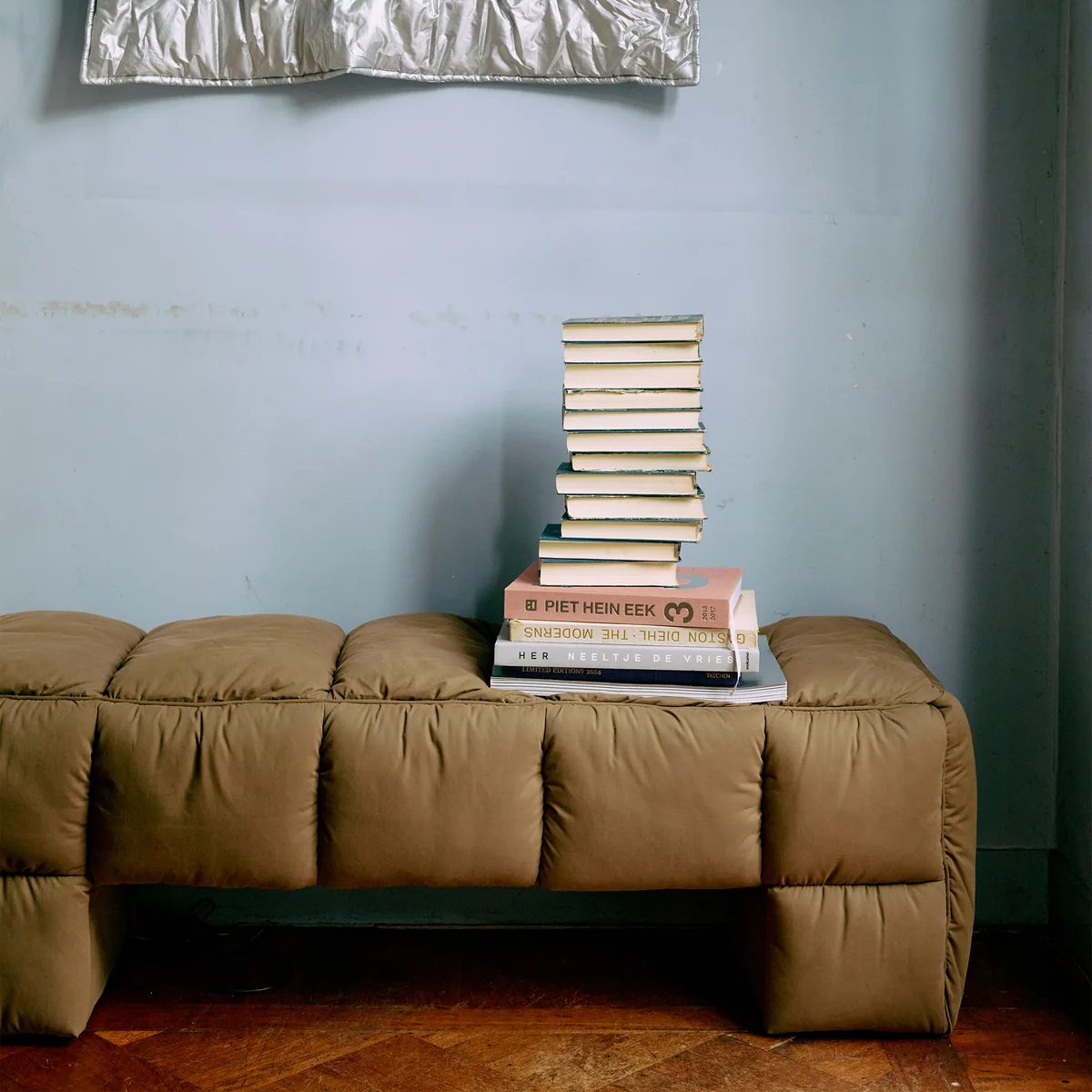 Die Puffy Lobby Bank von HKliving überzeugt mit einer verspielten Silhouette und grosszügiger Polsterung. Die sichtbare Steppung verleiht dem Möbelstück Struktur und eine textile Präsenz, die zugleich wohnlich und modern wirkt. Ob im Flur, am Fussende eines Bettes oder als Sitzgelegenheit am Esstisch – die Bank fügt sich flexibel in verschiedene Raumsituationen ein und wird dabei immer zum gestalterischen Blickfang. Ihr weiches Volumen lädt zum Verweilen ein und bringt eine freundliche Atmosphäre in den Raum.
