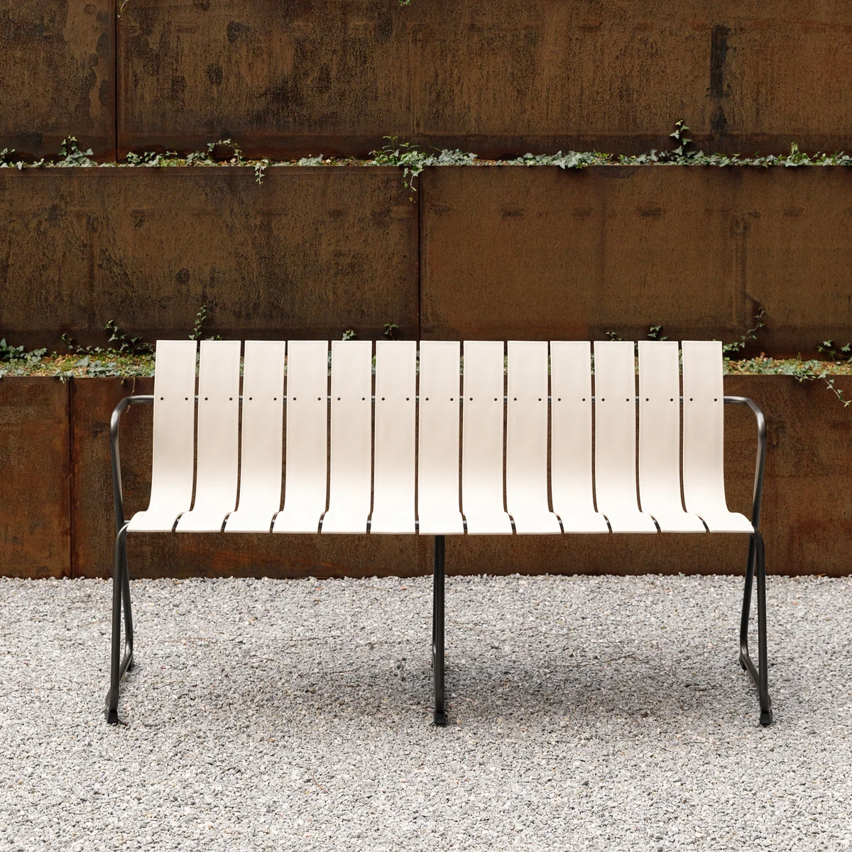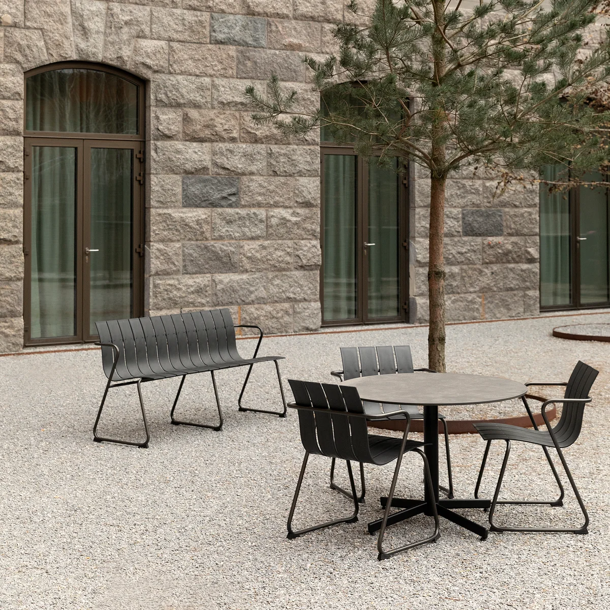 Die Ocean Bank von Mater ist Teil einer Serie an Tischen und Stühlen, die bereits 1955 von Nanna Ditzel entworfen wurde. Als Neuauflage werden klassisch, dänische Möbel aus recyceltem Kunststoff aus dem Meer neu interpretiert. Die Bank ist in verschiedenen Längen erhältlich und besteht aus einem Stahlgestell mit brünierter Oberfläche und Tischplatten aus recycelten Fischernetzen und Hartkunststoff. Die Bank ist für den Innen- sowie Aussenbereich geeignet und sorgt drinnen wie draussen für einen modernen und geradlinigen Look.