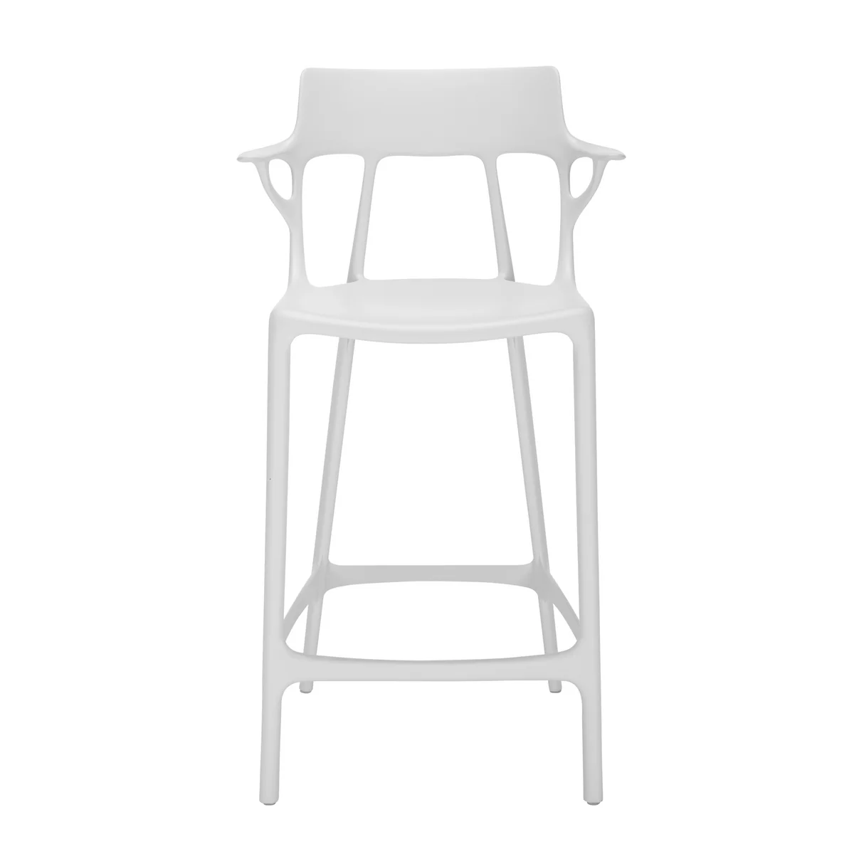 Der AI Barstuhl (recycled) von Philippe Strack für Kartell erweitert die aussergewöhnliche AI Produktfamilie. Das AI in diesem Falle steht für "Artificial Intelligence", also künstliche Intelligenz. In Zusammenarbeit mit dem 3D-Software Unternehmen Autodesk entwickelte Strack über Jahre hinweg einen künstlich generierten Stuhl. Zuwachs verkörpert nun der recycelte Barstuhl.