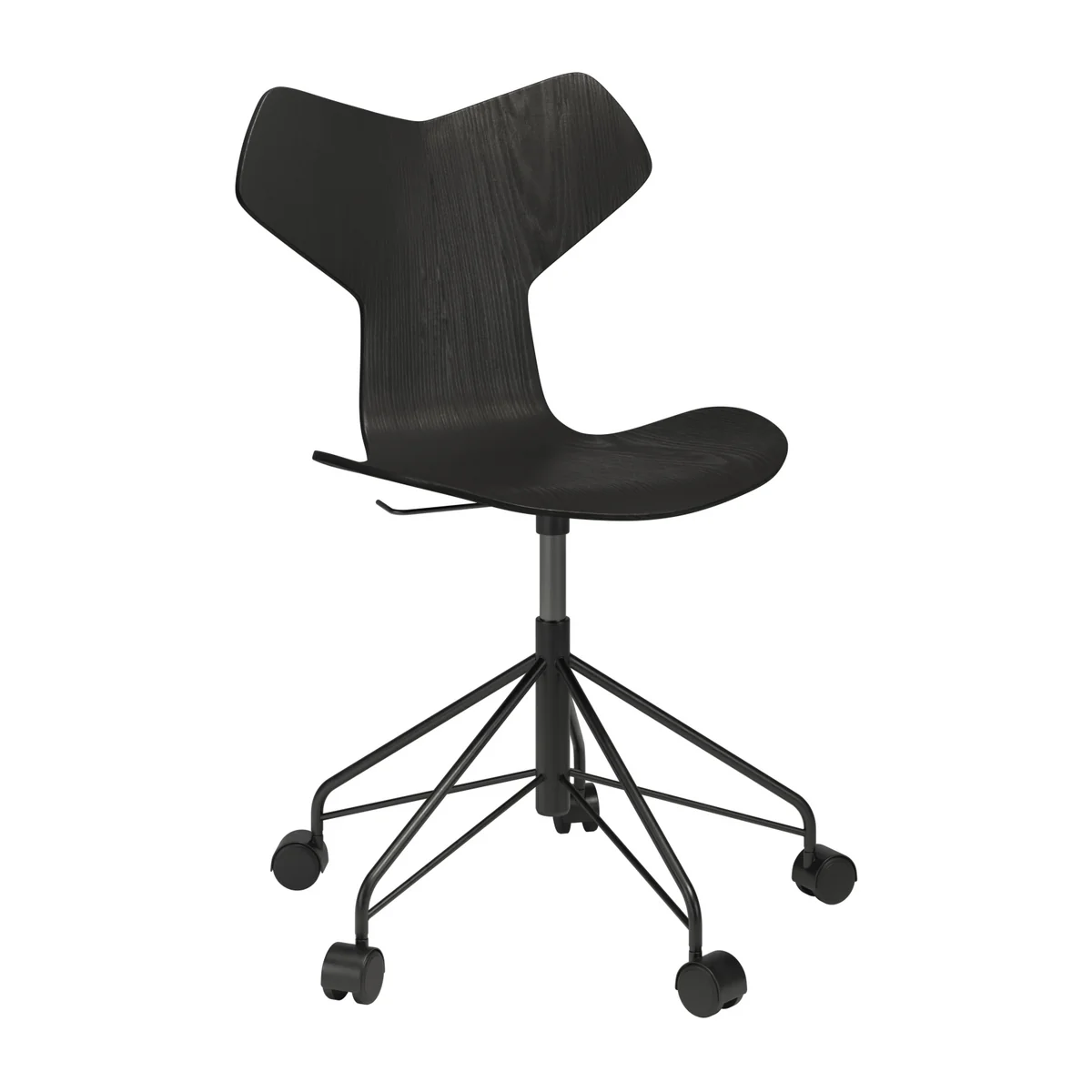 Fritz Hansen - Grand Prix Bürostuhl, schwarz / Esche schwarz gefärbt (gebremste Rollen für Hartfussböden)