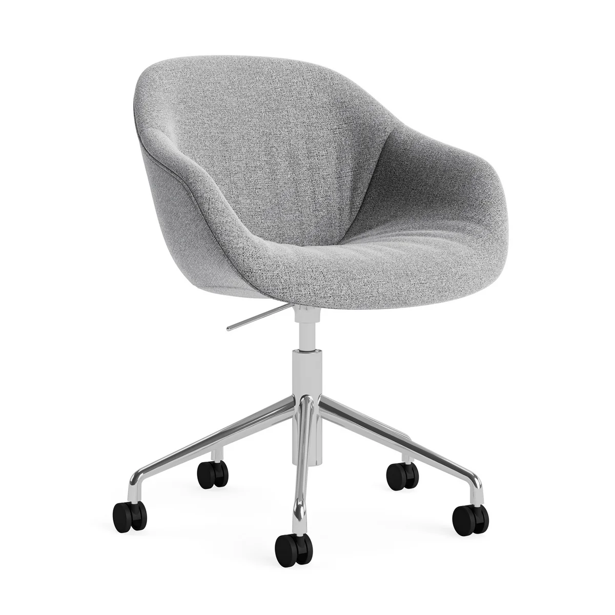 Der About A Chair AAC 253 Drehstuhl besitzt Armlehnen und ein Aluminium-Vierbeingestell. Die Sitzschale besteht aus durchgefärbtem Kunststoff. Das Untergestell und der Bezug sind in verschiedenen Varianten erhältlich.