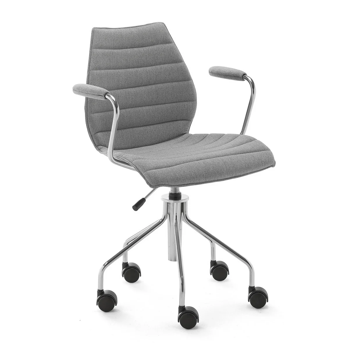 Der Maui Soft Bürostuhl von Kartell ist nicht bloss vielseitig und gemütlich- sein Polster besteht auch zu 50% aus recycelter Faser. Erhältlich in vielen wunderschönen Farben. Das Gestell des komfortablen Stuhls besteht aus verchromten Stahl, das Polster aus Nylon mit Stoffüberzug.