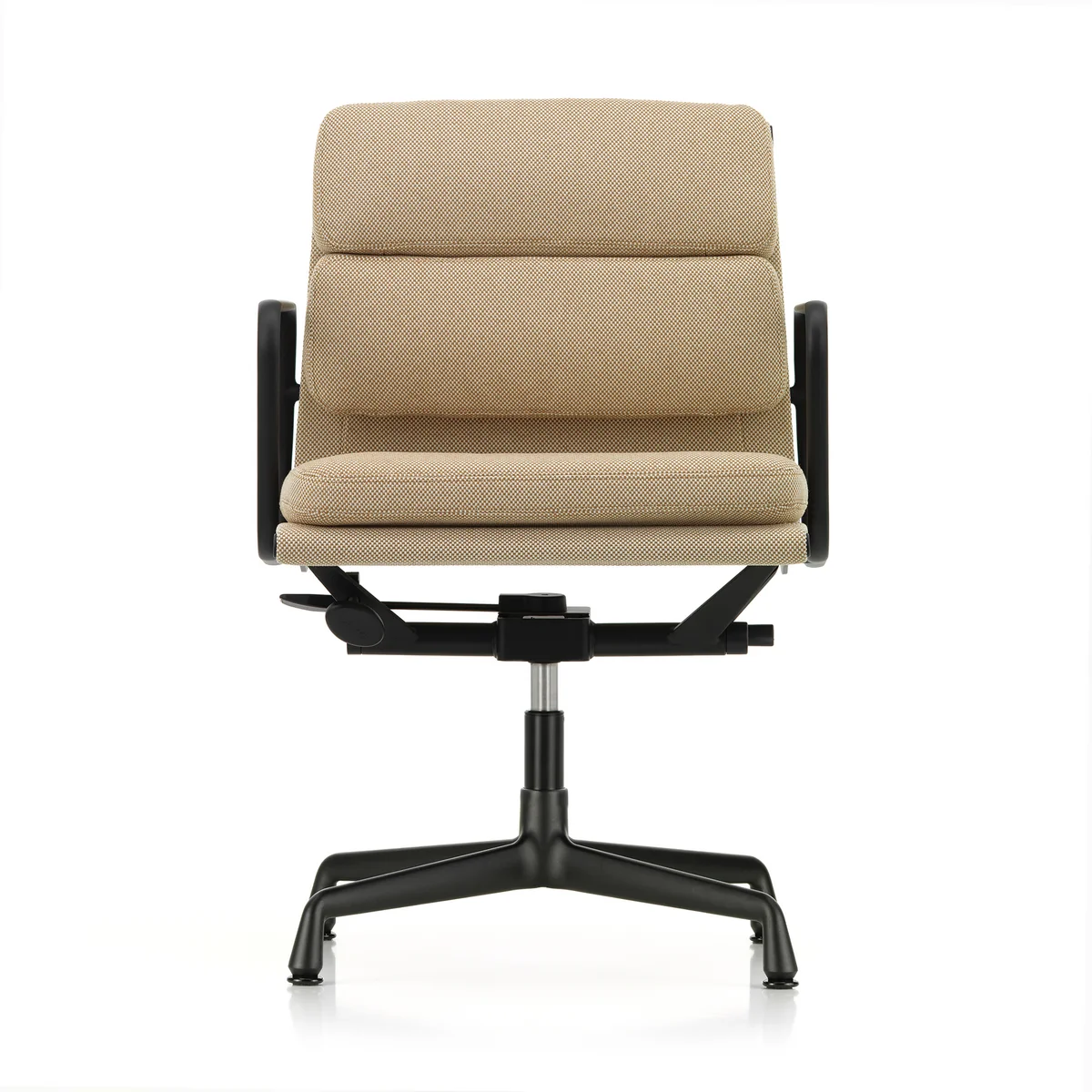 Vitra - EA 231 Soft Pad Bürostuhl mit Armlehnen, drehbar, deep black / Laser RE, papyrus / cream (Filzgleiter)
