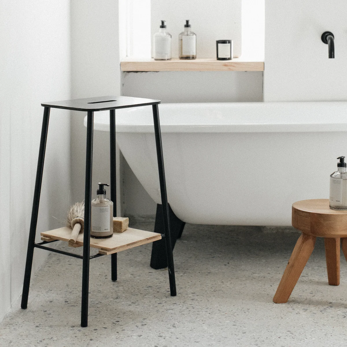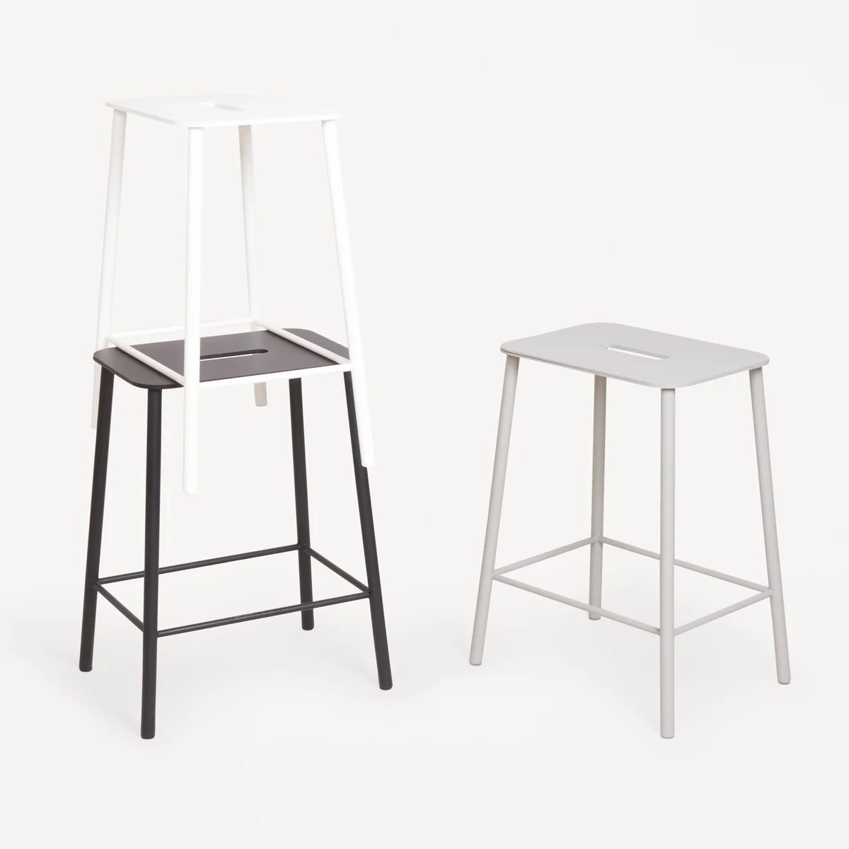 Der Adam Hocker ist in zwei Grössen erhältlich: als Hocker und als Barhocker. Beide sind als Hocker, als zusätzlicher Stuhl oder sogar als Beistelltisch geeignet. Hergestellt werden sie aus Eichenholz und pulverbeschichtetem Stahl.