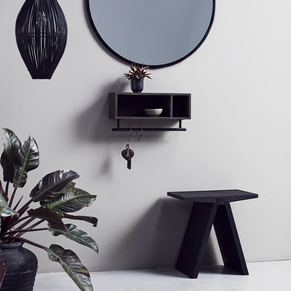 Angle wird mit nur zwei Schrauben ganz simpel zusammengebaut und kann nach Belieben klassisch als Hocker oder gar als Beistelltisch verwendet werden. Es empfiehlt sich den Angle Hocker vor Gebrauch zu ölen. Bitte nicht draufstellen.