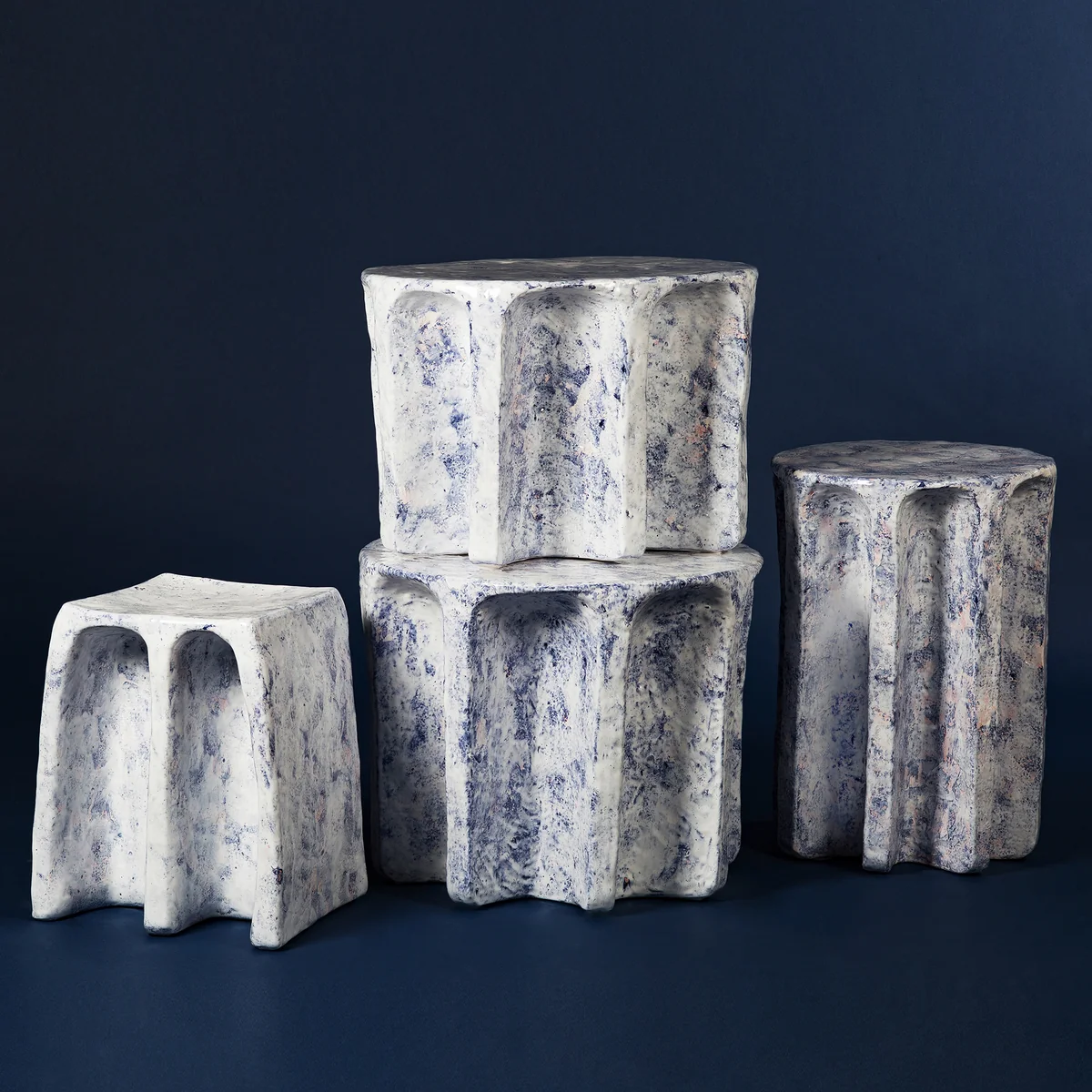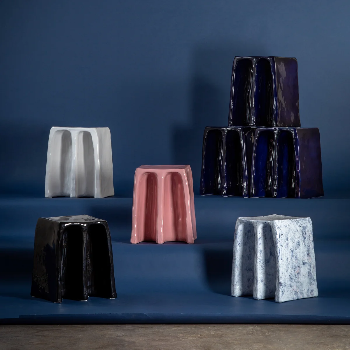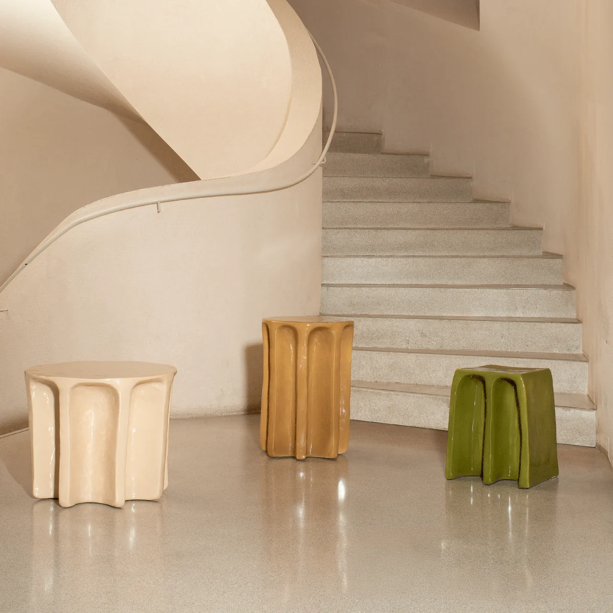 Der Chouchou Hocker / Beistelltisch, entworfen von Lorenzo Zanovello, verbindet skulpturale Eleganz mit spielerischem Design. Die Form erinnert an eine antike Säule – eine Hommage an die italienischen Wurzeln des Designers. Aus Keramik gefertigt und mit einer grosszügigen, einzigartigen Farbglasur versehen, wird jede Oberfläche zu einem Unikat. Die unpolierte Struktur betont die handwerkliche Qualität und hebt sich von industrieller Einheitlichkeit ab. Der Chouchou Table ist in verschiedenen Varianten erhältlich, als hoher Beistelltisch oder als Couchtisch, in runder oder ovaler Form. Jedes Stück zeigt charakteristische Merkmale wie unregelmässige Keramikstärken, Farbvariationen oder leichte Unebenheiten, die die traditionelle Handwerkskunst widerspiegeln.