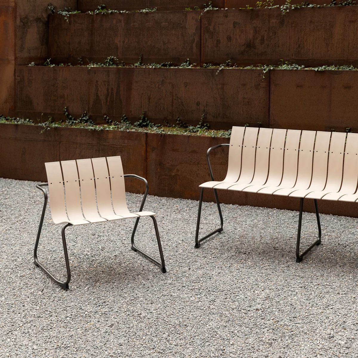 Der Ocean Lounge Chair von Mater ist Teil einer Serie an Tischen und Stühlen, die bereits 1955 von Nanna Ditzel entworfen wurde. Als Neuauflage werden klassisch, dänische Möbel aus recyceltem Kunststoff aus dem Meer neu interpretiert. Der Stuhl ist in verschiedenen Längen erhältlich und besteht aus einem Stahlgestell mit brünierter Oberfläche und Tischplatten aus recycelten Fischernetzen und Hartkunststoff. Der Stuhl ist für den Innen- sowie Aussenbereich geeignet und sorgt drinnen wie draussen für einen modernen und geradlinigen Look.