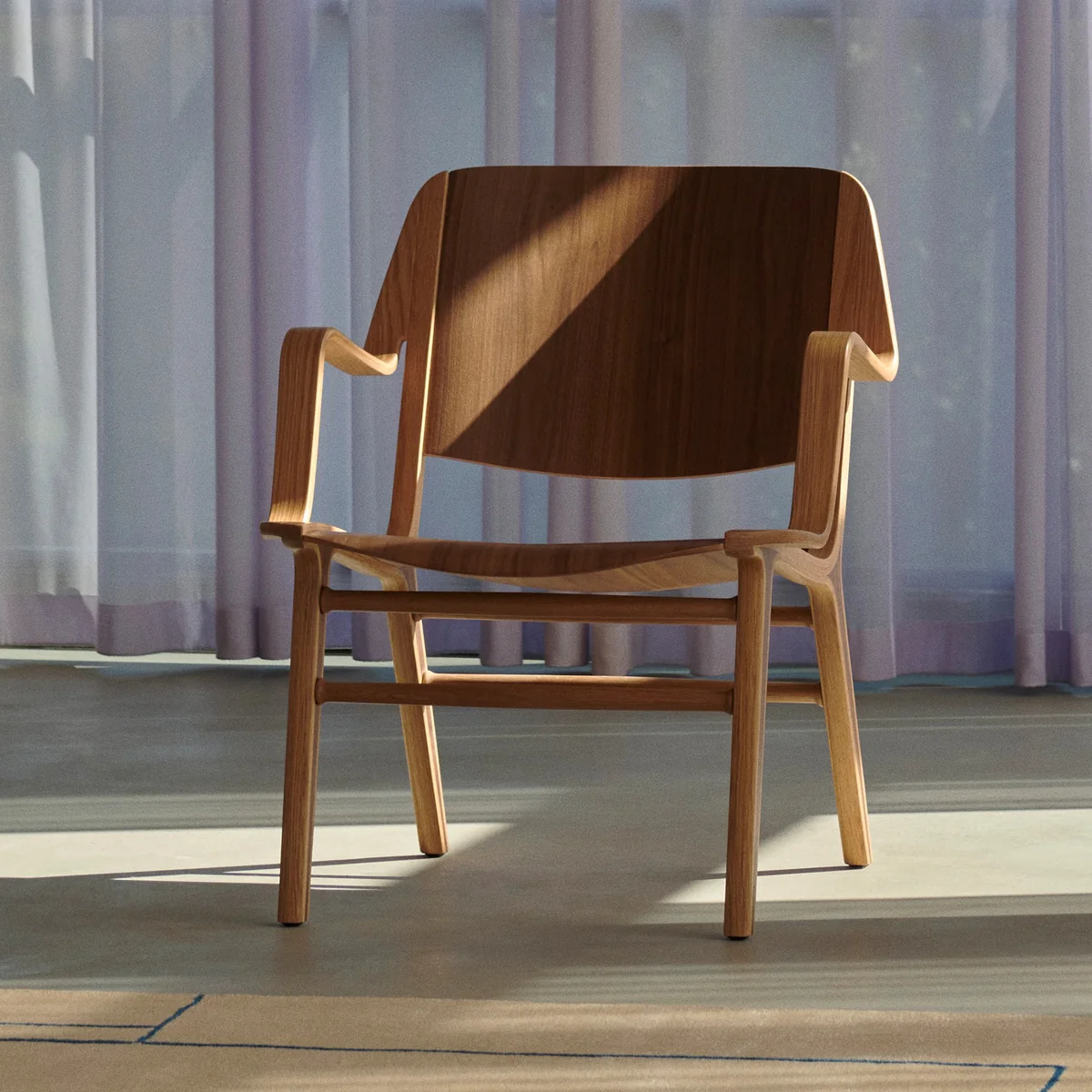 Ikonischer Lounge Chair mit Armlehnen aus Eiche oder Walnuss