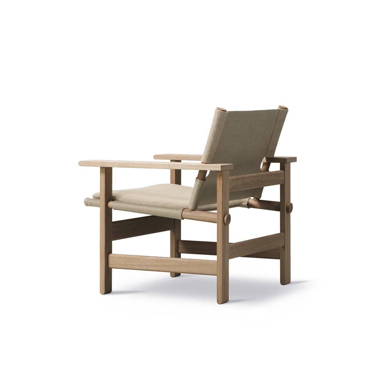 Der "The Canvas Sessel" des dänischen Herstellers Fredericia ist eines der letzten Möbelstücke des Designers Børge Mogensen. 1970 entworfen, ist der Sessel nun aus dem Archiv geholt worden. Hohe Funktionalität, natürliche Materialien und ein perfektes proportionales Design kennzeichnen den Canvas Sessel. Er spiegelt den Ethos der damaligen Zeit wieder - sein informeller, bodenständiger Ausdruck ist eine Hommage an die Grundformen der Natur.