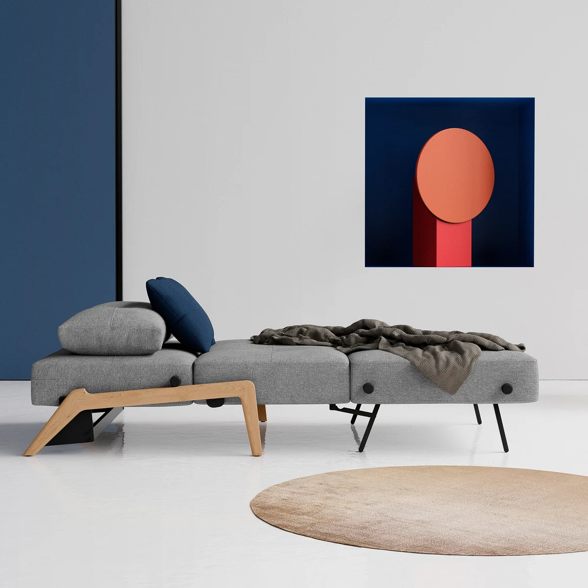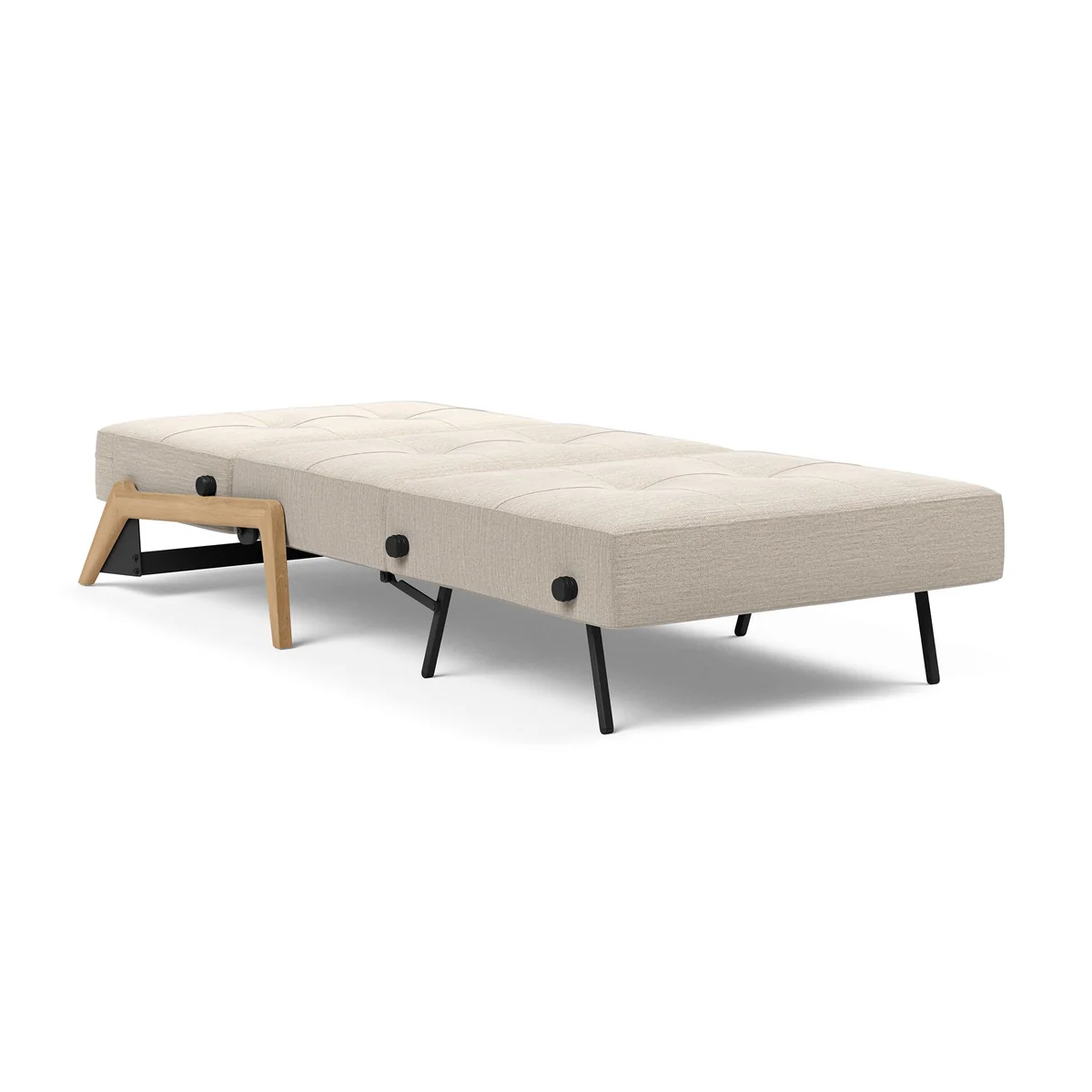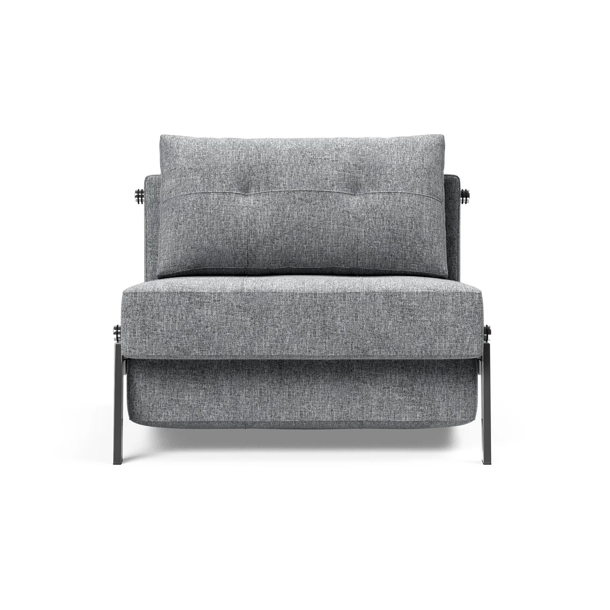 Der Cubed 90 Sessel von Innovation Living wurde von Designer Per Weiss entworfen, um den Anforderungen urbaner Räume gerecht zu werden. Er überzeugt durch seine kompakte Bauweise und verwandelt sich im Handumdrehen von einem eleganten Sessel in ein komfortables Einzelbett. Die drei Matratzensegmente mit No-zag-Federung sorgen für gleichmässigen Sitz- und Liegekomfort. Beim Ausklappen klappen die Füsse automatisch mit aus – ein durchdachter Mechanismus, der die Handhabung besonders einfach macht.