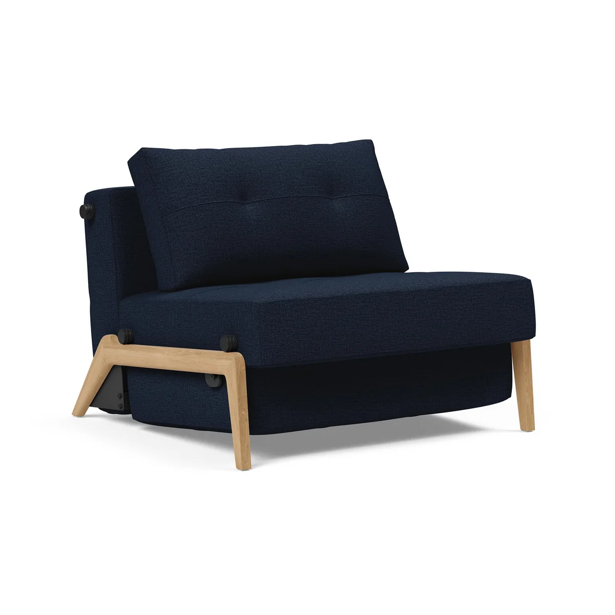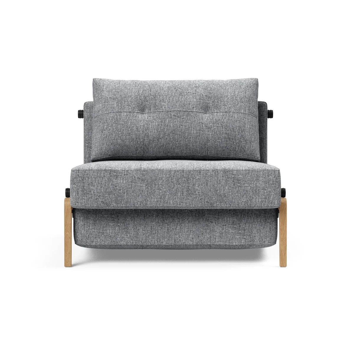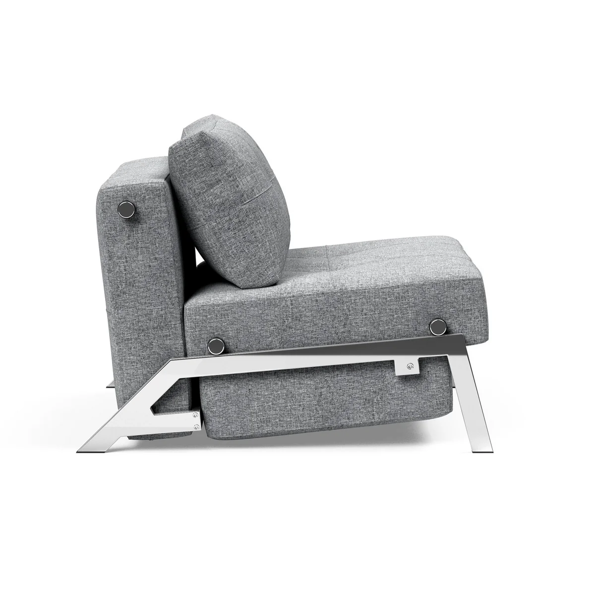 Der Cubed 90 Sessel von Innovation Living wurde von Designer Per Weiss entworfen, um den Anforderungen urbaner Räume gerecht zu werden. Er überzeugt durch seine kompakte Bauweise und verwandelt sich im Handumdrehen von einem eleganten Sessel in ein komfortables Einzelbett. Die drei Matratzensegmente mit No-zag-Federung sorgen für gleichmässigen Sitz- und Liegekomfort. Beim Ausklappen klappen die Füsse automatisch mit aus – ein durchdachter Mechanismus, der die Handhabung besonders einfach macht.