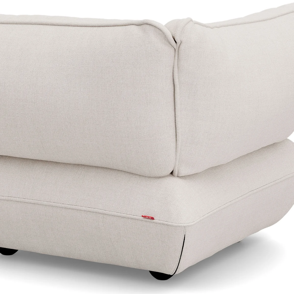 Das Sumo Sofa Eck-Modul ist der Inbegriff von modernem Lounging – grosszügig, durchdacht und rundum komfortabel. Inspiriert von einer Ansammlung weicher Kissen, lässt sich das modulare Sofa individuell zusammenstellen – vom kompakten Zweisitzer bis zur ausladenden Eckkombination. Die hochwertigen Bezüge bestehen aus 100 % recyceltem Polyester und sind wahlweise in Cord oder Bouclé erhältlich – zwei Texturen, die Gemütlichkeit und Langlebigkeit vereinen.