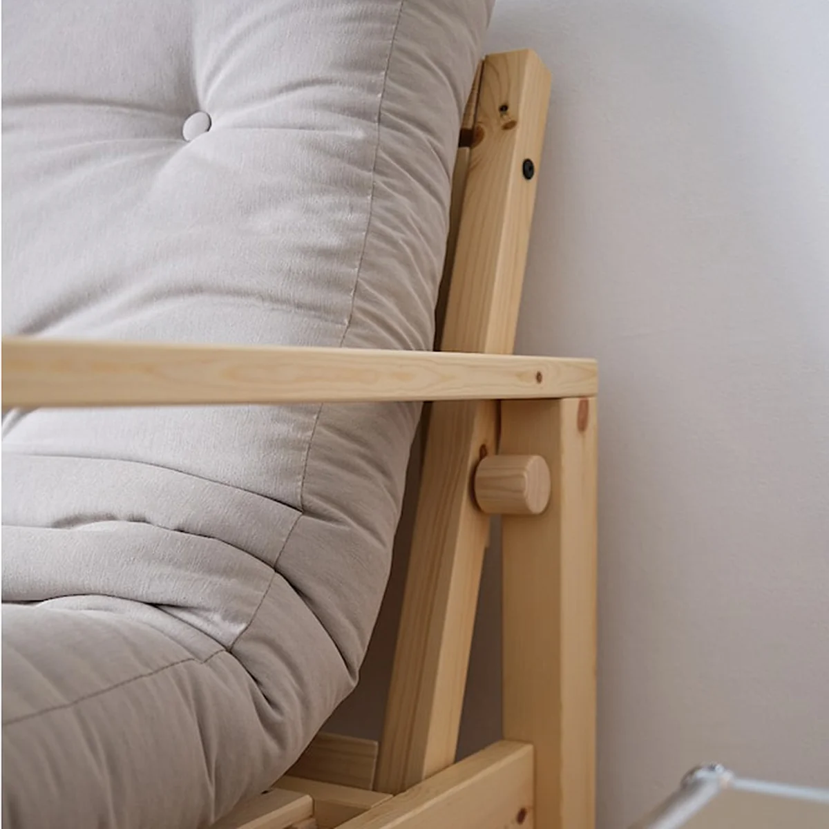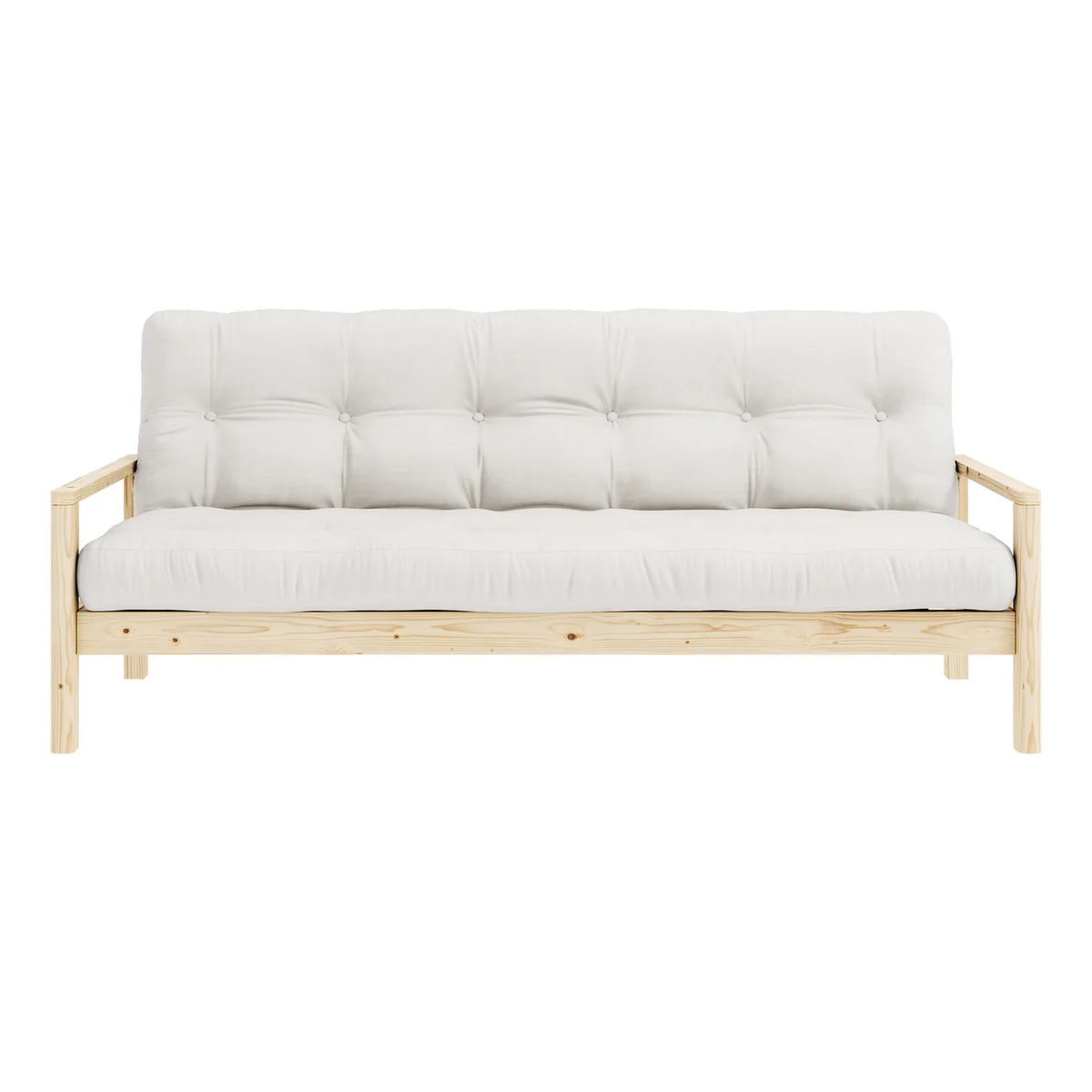 Das minimalistische Design bringt die nordische Luft in das Interieur und lässt sich in jede bereits vorhandene Wohnlandschaft einfügen. In unterschiedlichen Ausführungen erhältlich, kann das Knob Schlafsofa vielfältig kombinieren.