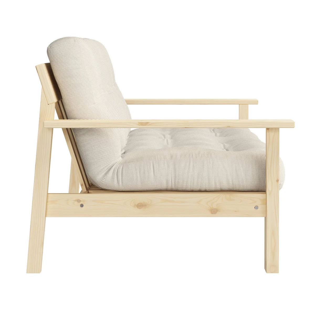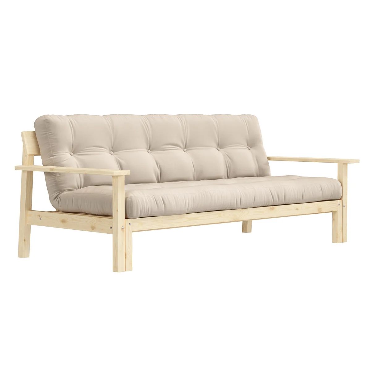 Das Unwind Schlafsofa des dänischen Labels Karup Design macht seinem Namen alle Ehre! Es bietet sich perfekt zum zum entspannen an. Im Handumdrehen verwandelt sich das elegante Kiefernholzsofa zu einem Kinoabendsofa. Machen sie es sich liegend gemütlich und lehnen sie sich zurück. Die geräumige Armlehne kann ideal als Beistelltisch genutzt werden. Platzieren Sie Getränke und Snacks, sodass diese jederzeit griffbereit sind.