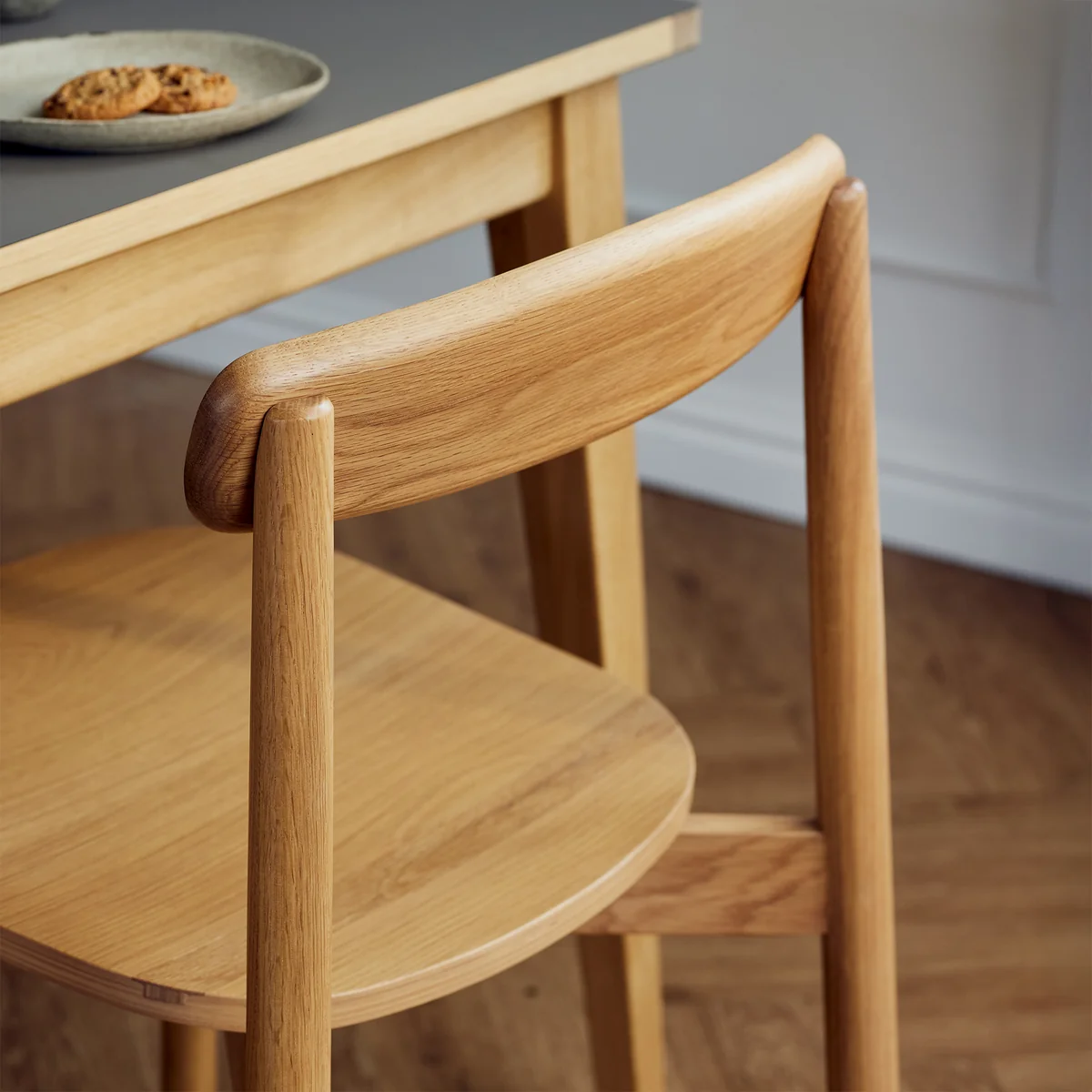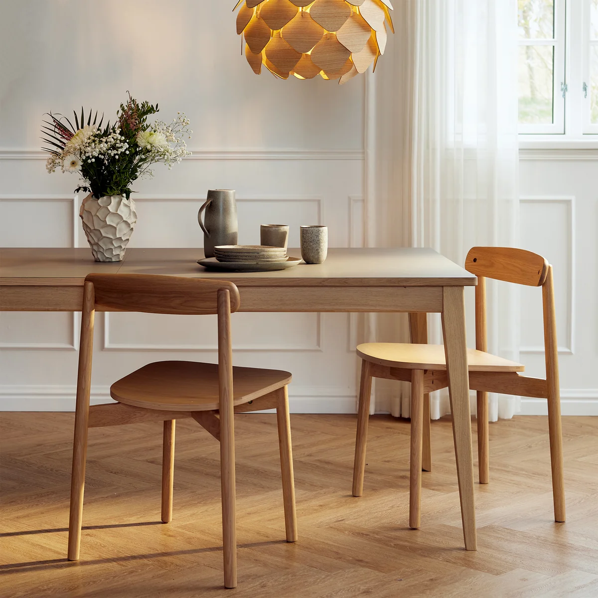 Der Unite Stuhl, entworfen vom dänischen Designstudio Says Who, verbindet zeitlose Ästhetik mit funktionaler Schlichtheit. Inspiriert vom klassischen skandinavischen Möbelstil überzeugt er mit klaren Linien, sanften Rundungen und subtilen Details, die ihn sowohl modern als auch einladend wirken lassen. Die ergonomisch geformte Rückenlehne bietet angenehmen Halt und ermöglicht komfortables Sitzen – selbst über längere Zeiträume. Die Sitzfläche aus Furnier verleiht dem Stuhl eine leichte, elegante Ausstrahlung und fügt sich harmonisch in verschiedenste Einrichtungsstile ein.