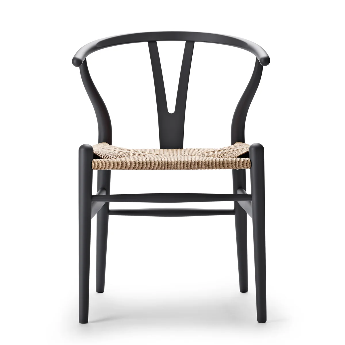 Das charakteristische "Y" in der Rückenlehne des CH24 sorgt für komfortables Sitzen, stabilisiert gleichzeitig die dampfgebogene Rückenlehne und ist natürlich für den Namen des Stuhls verantwortlich. Denn der Wishbone Chair ist auch als Y Chair bekannt. Die sanft gebogene Lehne, die besondere Verstrebung und die handgeflochtene Sitzfläche ermöglichen unterschiedlichste Sitzpositionen, wodurch sich der CH24 für verschiedene Einsatzbereiche eignet.