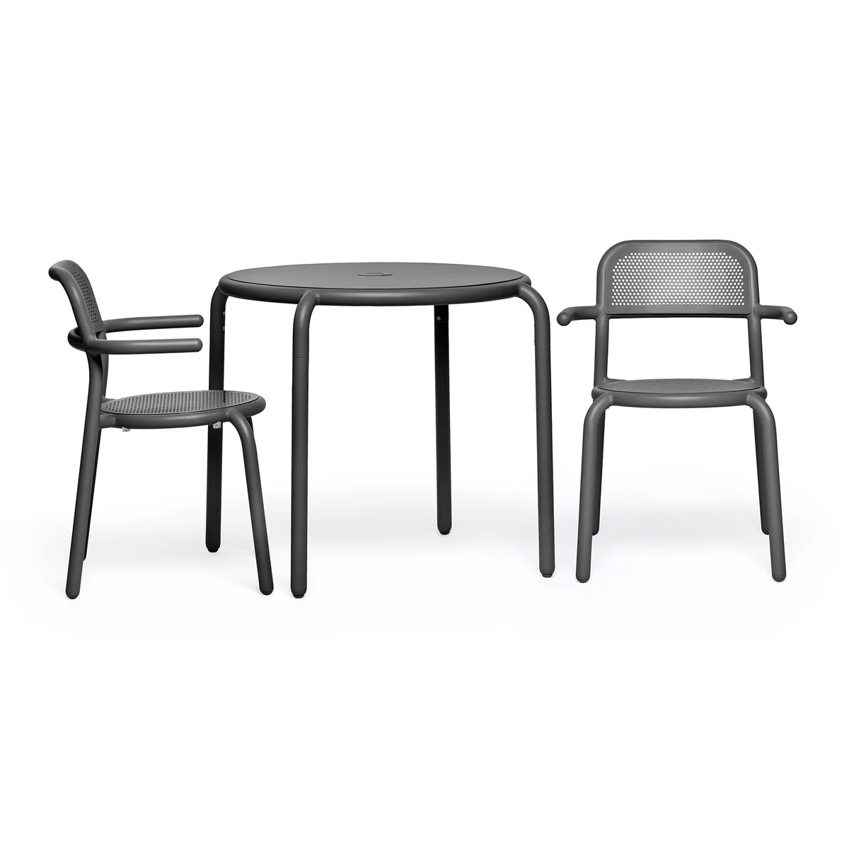Der runde Toní Bistreau Tisch von Fatboy ist ein idealer Begleiter auf der Terrasse, auf dem Balkon, im Garten oder auch im Innenbereich. Der praktische Einlass (41 mm) bietet die Möglichkeit den passenden Fatboy - Stripesol Sonnenschirm einzulassen. So kann man das Essen ganz bequem im Schatten geniessen. Aber auch ohne Schirm ist der Fatboy Bistreau Tisch ein Blickfang. Der praktische Sonnenschirmeinlass lässt sich in dem Fall einfach mit dem Stöpsel verschliessen oder mit dem dekorativen Kerzenhalter stilvoll in Szene setzen.