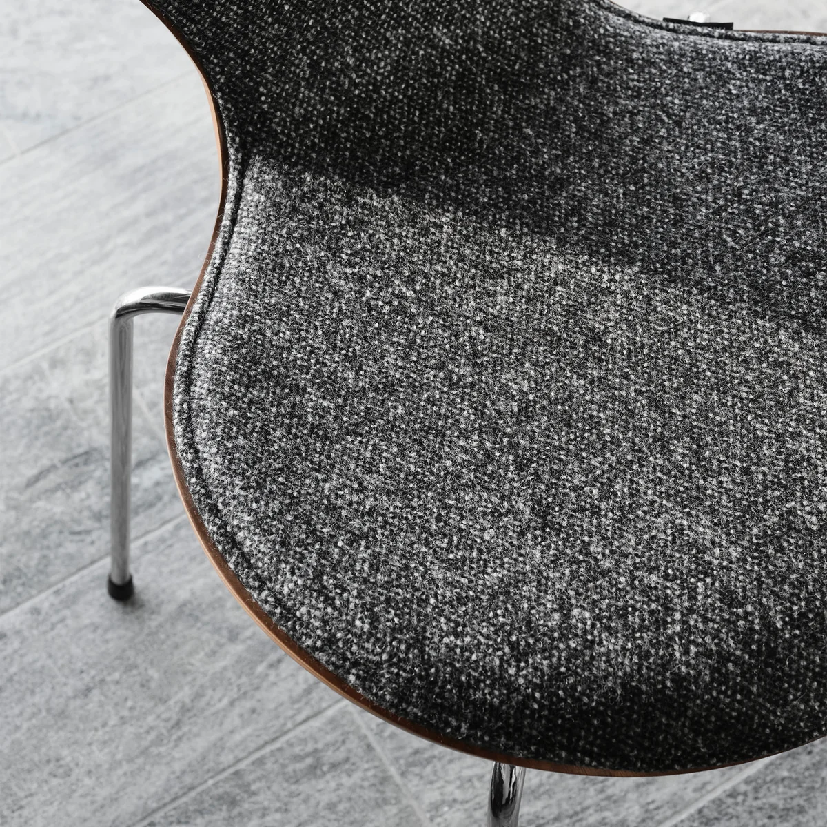 Das Gestell wird aus verchromtem Stahlrohr gefertigt. Die Polsterung variiert je nach Modell. Der Serie 7 Stuhl ist in unterschiedlichen Ausführungen und Farben erhältlich.