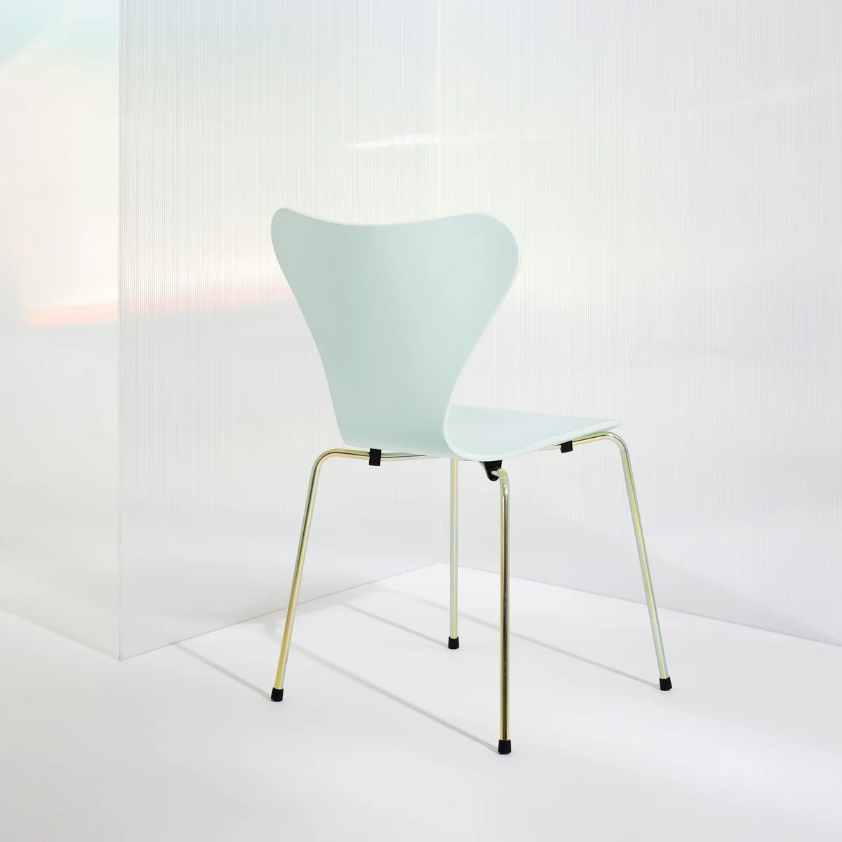 Die Special Edition dieses Serie 7 Stuhles fängt die sanfte Schönheit des dänischen Morgenlichts ein und verleiht Arne Jacobsens ikonischem Serie 7 Stuhl eine neue, poetische Farbpalette. Die fünf zarten Töne (erhältlich in Grün, Beige, Pink, Violett und Blau) spiegeln die Farben eines herbstlichen Morgens wider und werden mit einem Rainbow-Gestell kombiniert. Diese subtilen Nuancen erzeugen eine ruhige, harmonische Atmosphäre und lassen sich sowohl mit der bestehenden Fritz Hansen Farbpalette als auch untereinander mühelos kombinieren.