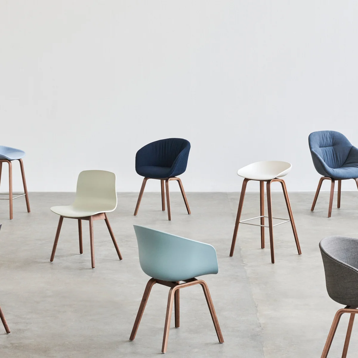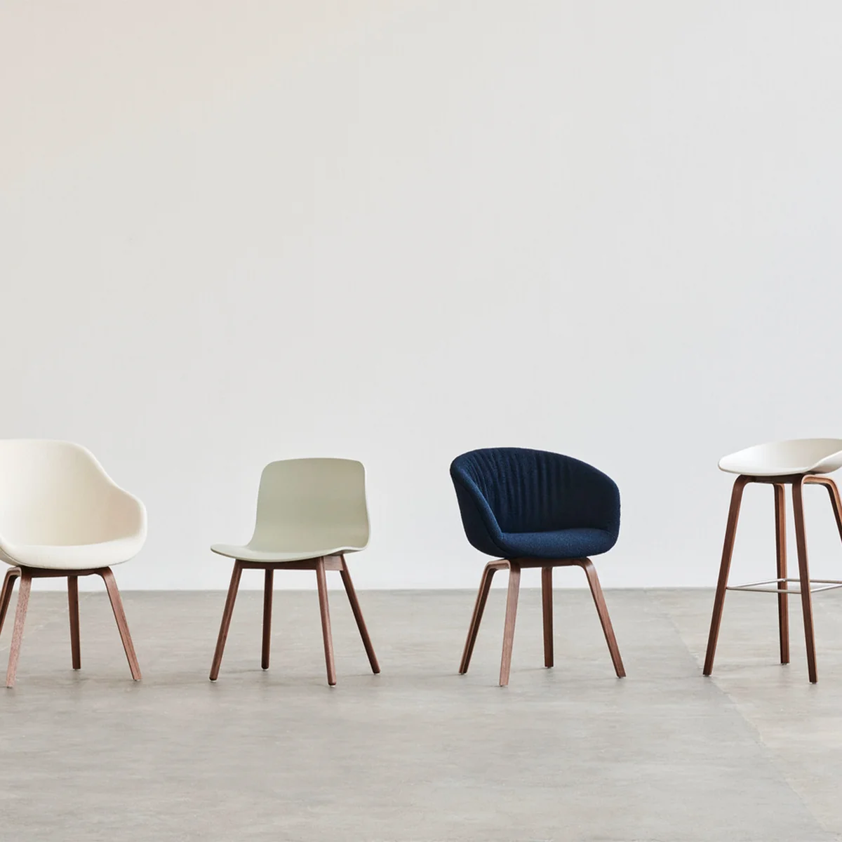 About a Chair von HAY ist eine Stuhl-Kollektion mit auffallender Einfachheit im Design. Mit ihr hat der Designer Hee Welling ein neues Level in der Kombination von Form, Funktion, Komfort, Detail und Ästhetik erreicht.