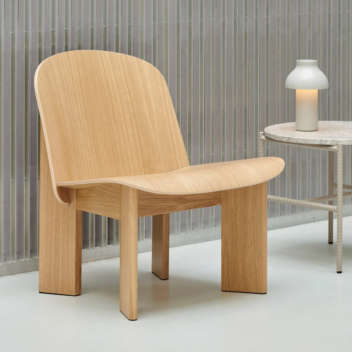 Der Chisel Lounge Chair von Andreas Bergsaker für HAY ist ein zeitloser Holzstuhl, der nach dem klassischen Tischlerwerkzeug Chisel (Meissel) benannt ist. Der massive Holzstuhl mit einzigartige Silhouette bietet eine bequeme, organische Sitzfläche und Rückenlehne, die einladend wirken. Optimaler Halt und Komfort werden durch die abgewinkelten Beine und abgeschrägten Kanten ergänzt.